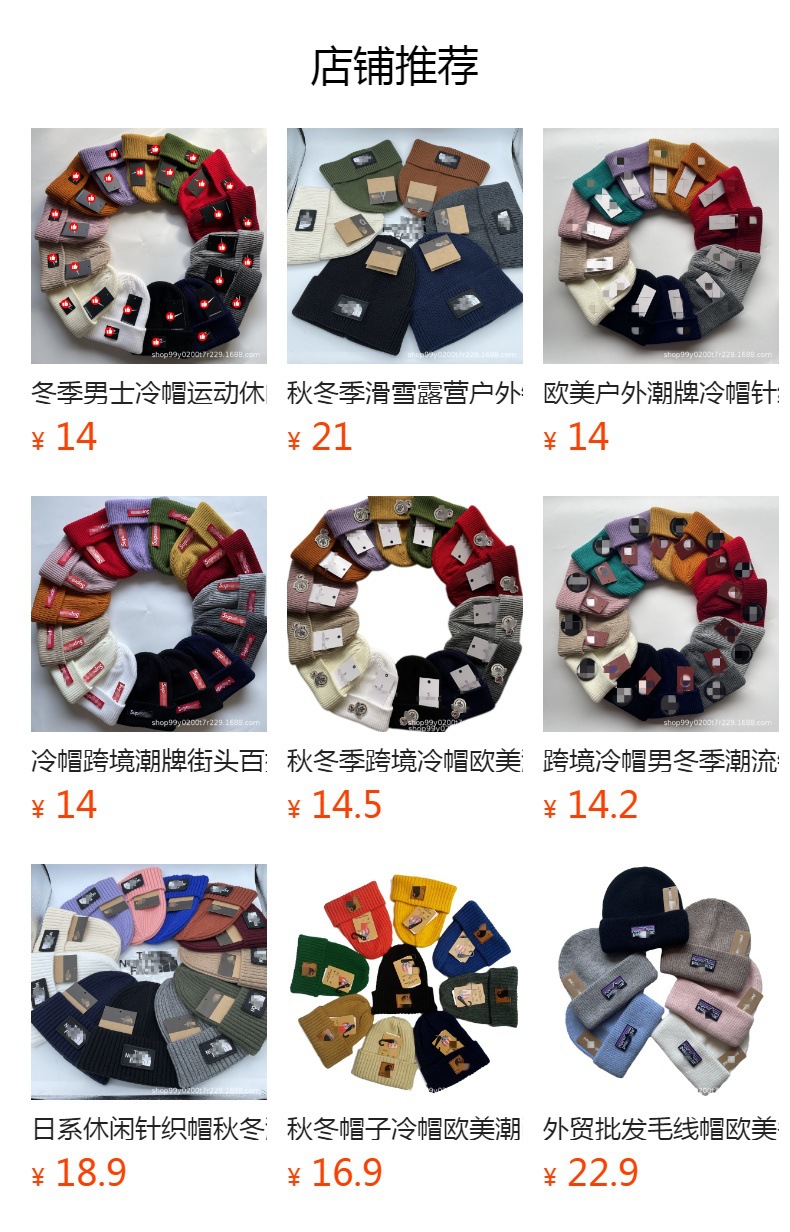 冬帽针织欧美时尚毛线帽大帽檐工装休闲保暖帽子套头冷帽护耳防寒