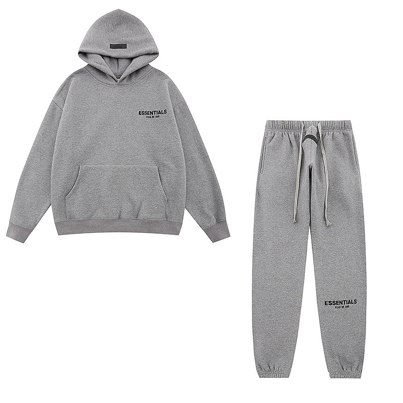 新款FEAR OF GOD ESSENTIALS植绒字母男女休闲宽松加绒连帽卫衣潮