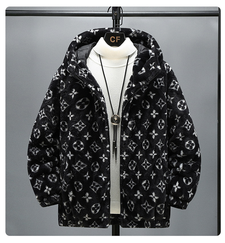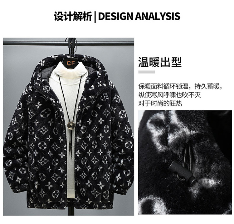 跨境外羊羔毛棉衣男冬季新款加绒宽松男士棉服休闲防寒保暖棉外套