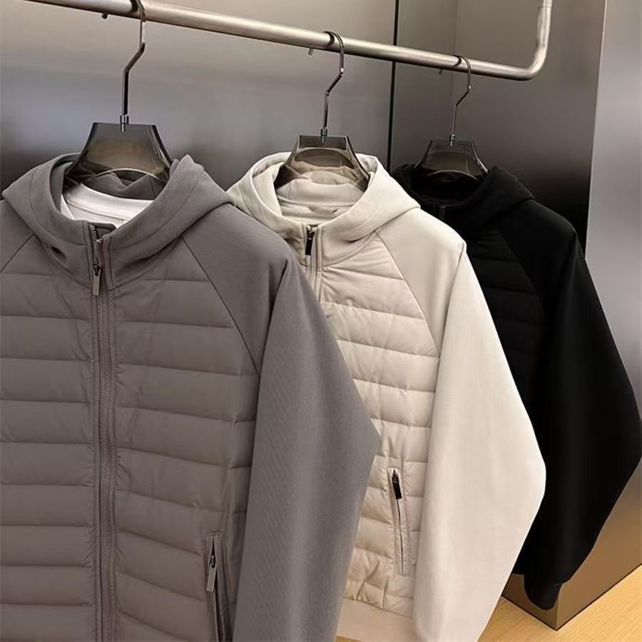 潮流秋冬季2025年连帽设计感休闲纯色小众拼接男青年连帽外套保暖