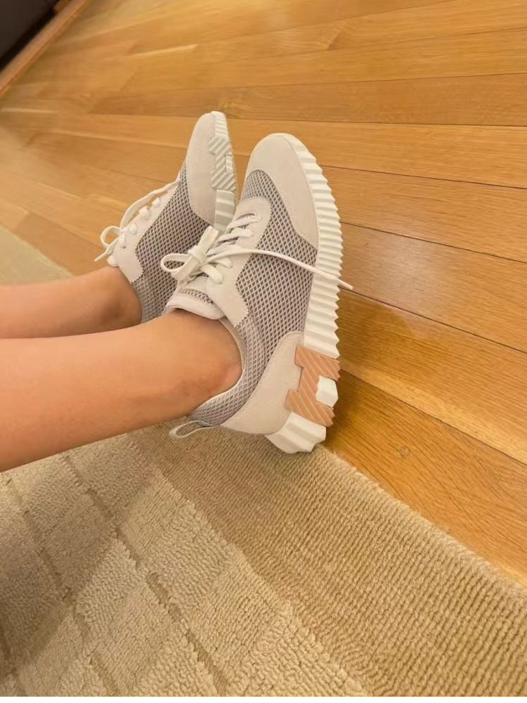 bouncing运动鞋女春夏2025新款H家复古休闲鞋情侣厚底小白鞋女