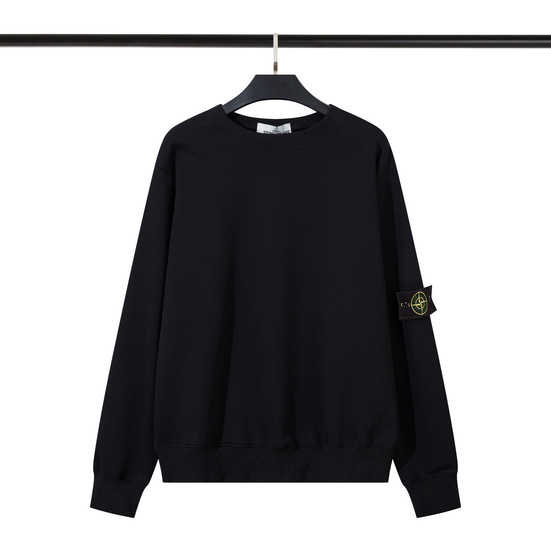 跨境ISLAND经典款石头岛纯色徽章圆领加绒长袖情侣百搭宽松卫衣