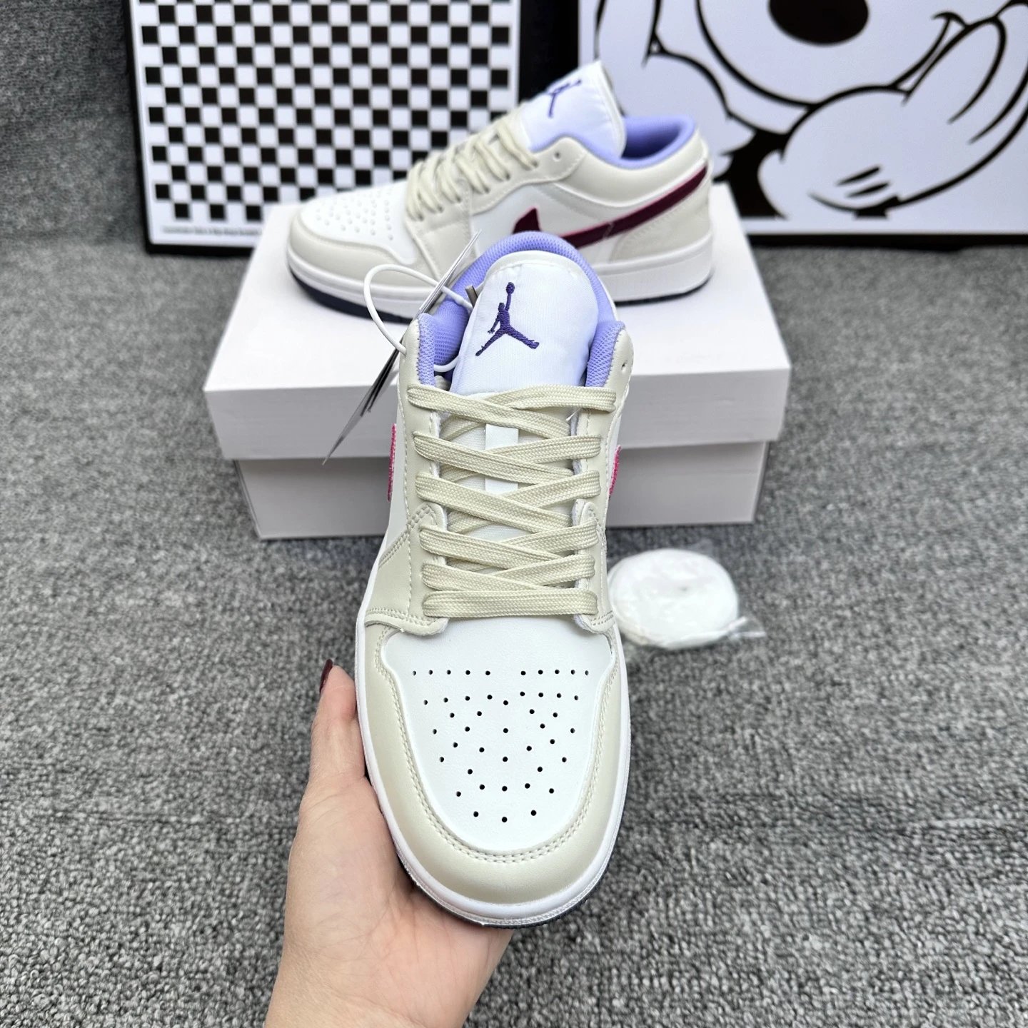 特价现货aj1低帮镭射紫罗兰花姑娘情人节篮球鞋真标二层AJ1黑紫脚黑黄趾扣碎北卡蓝芝加哥小闪电时尚男女鞋情侣休闲运动板鞋