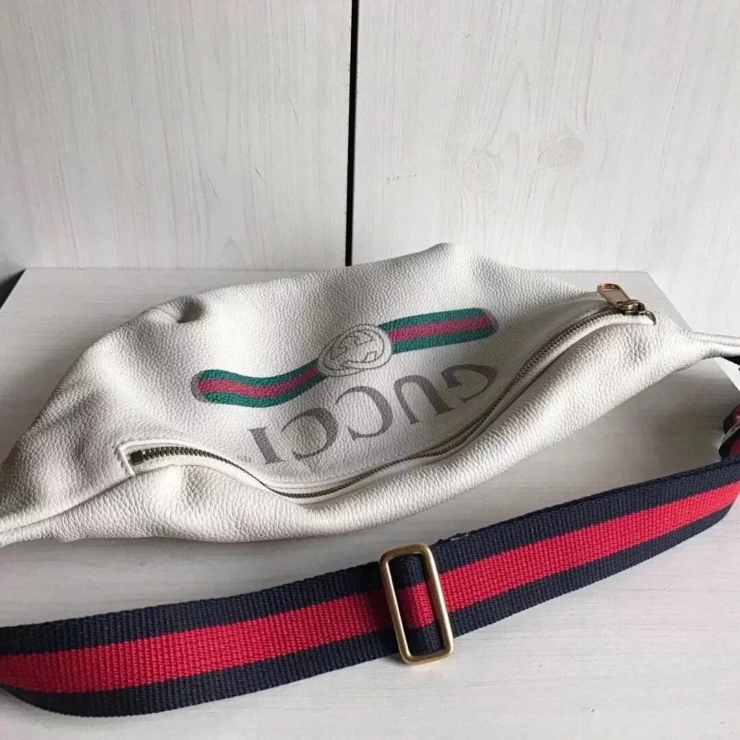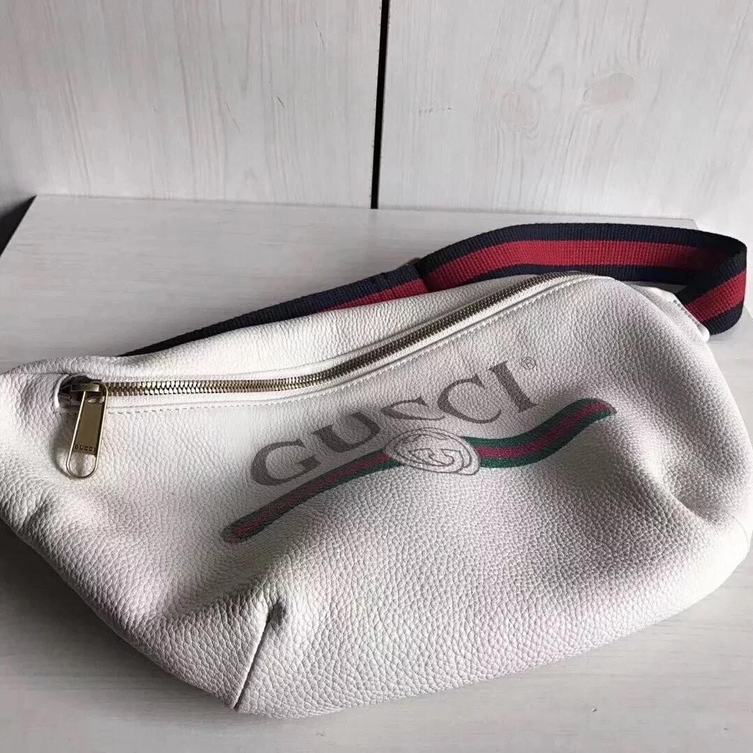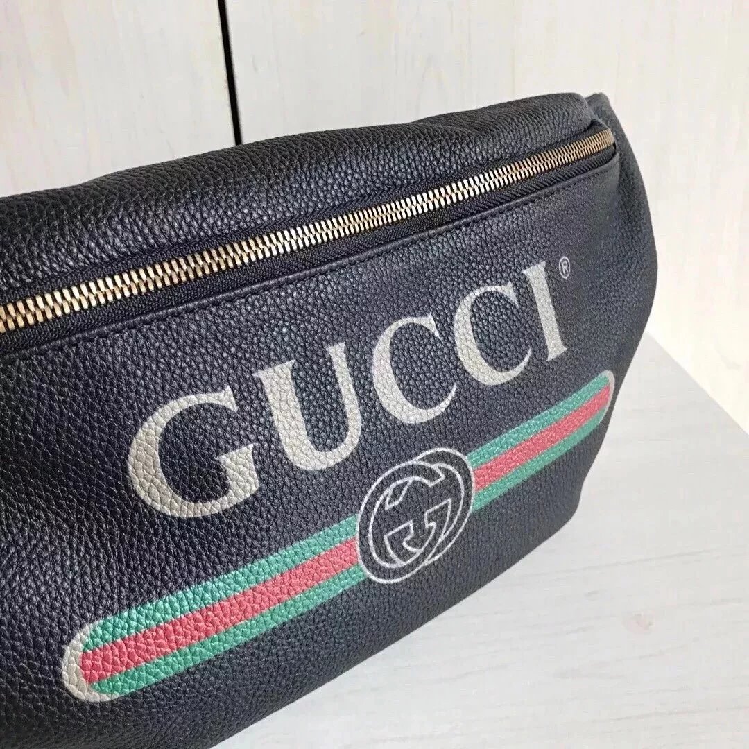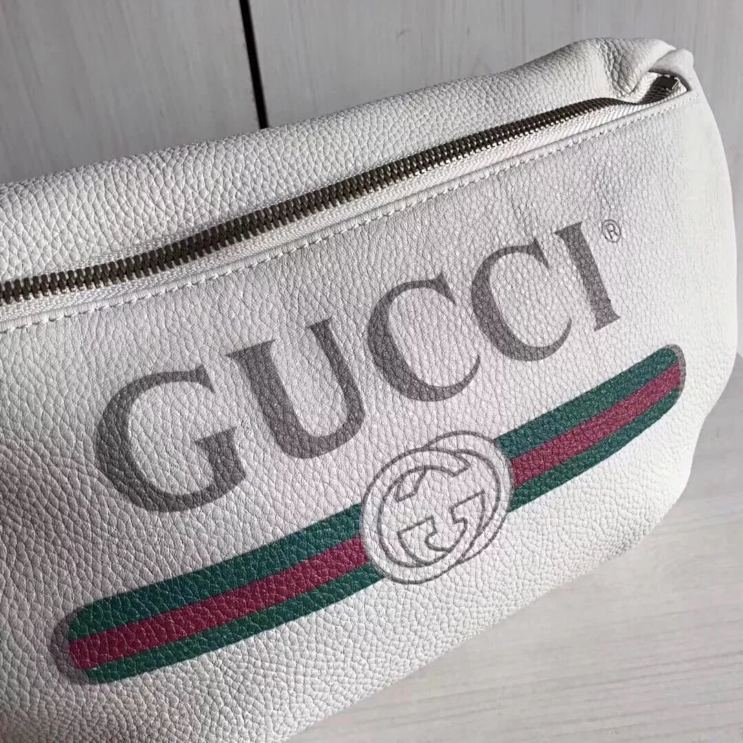 Gucci古奇原单腰包男女通用印花字母红绿织带小号时尚休闲Supreme合作款胸包527792493869