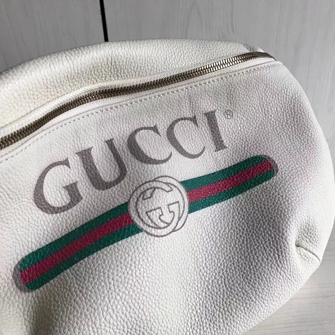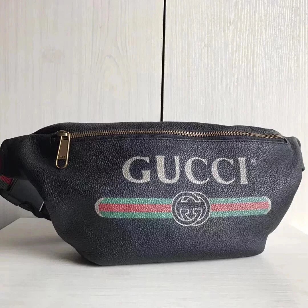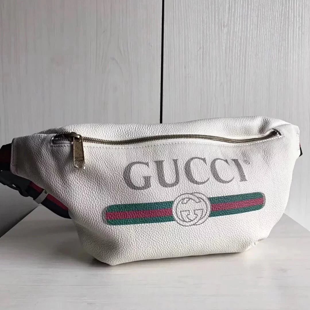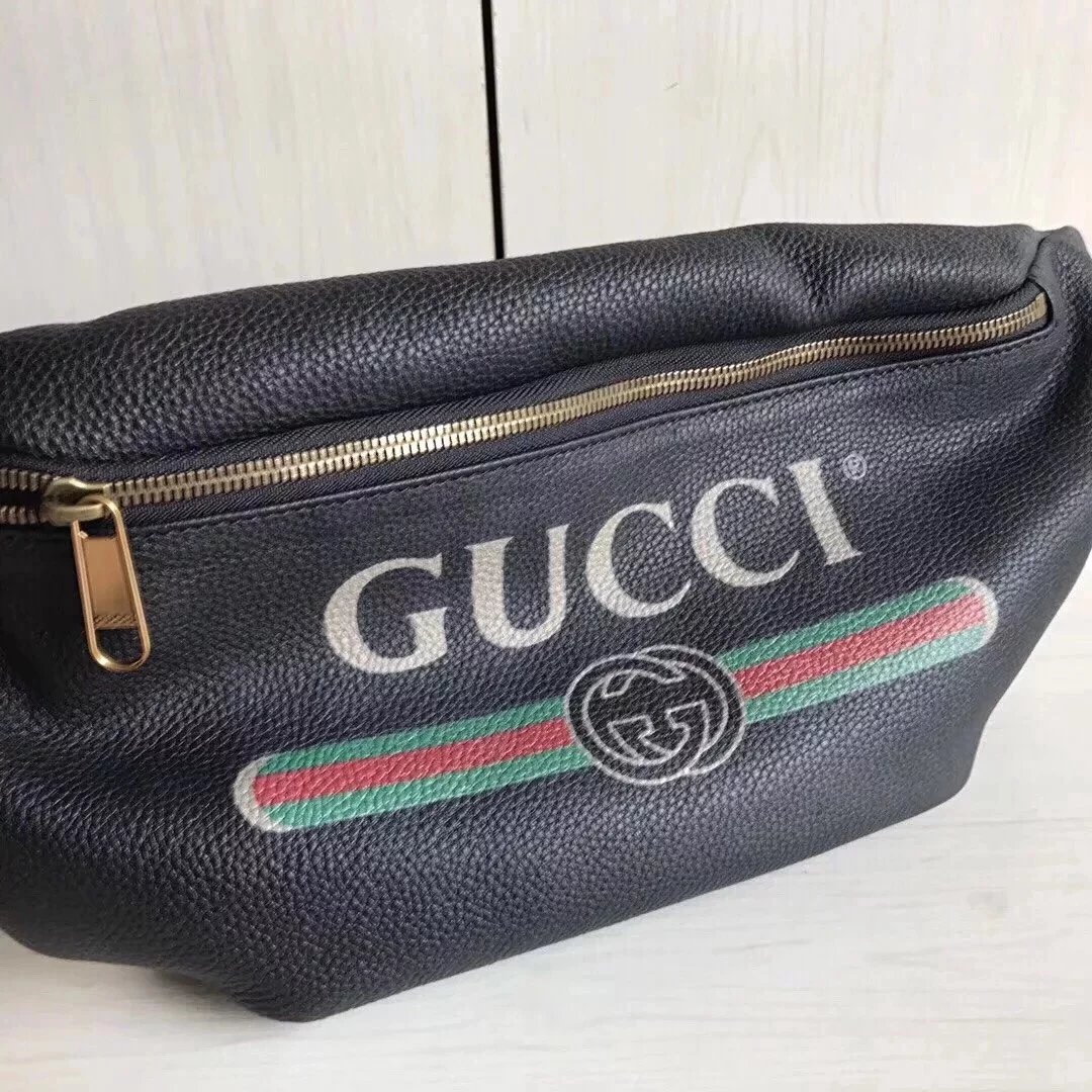 Gucci古奇原单腰包男女通用印花字母红绿织带小号时尚休闲Supreme合作款胸包527792493869