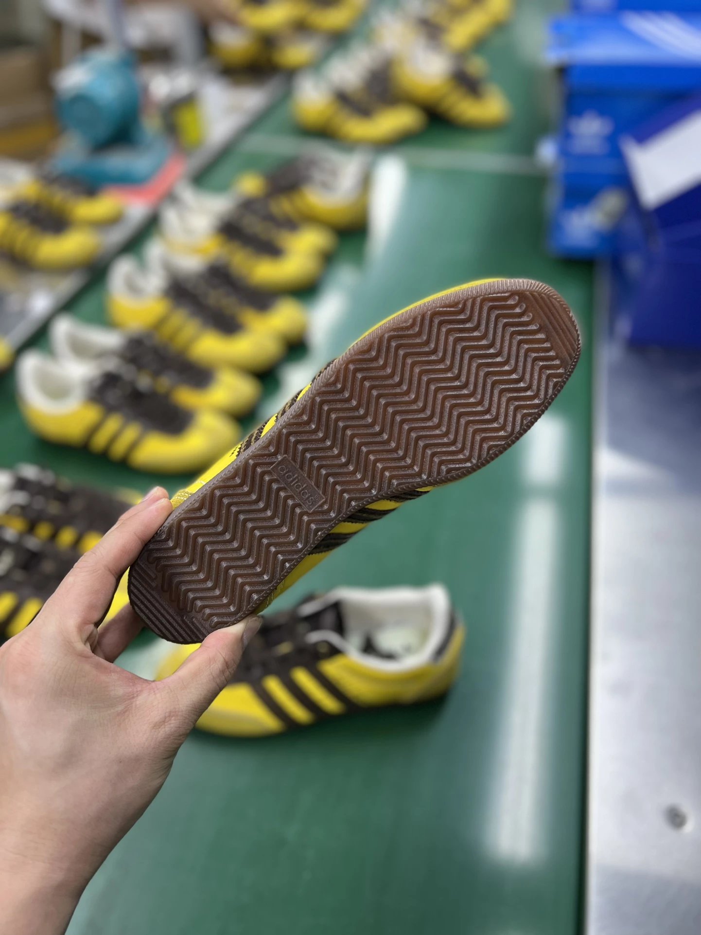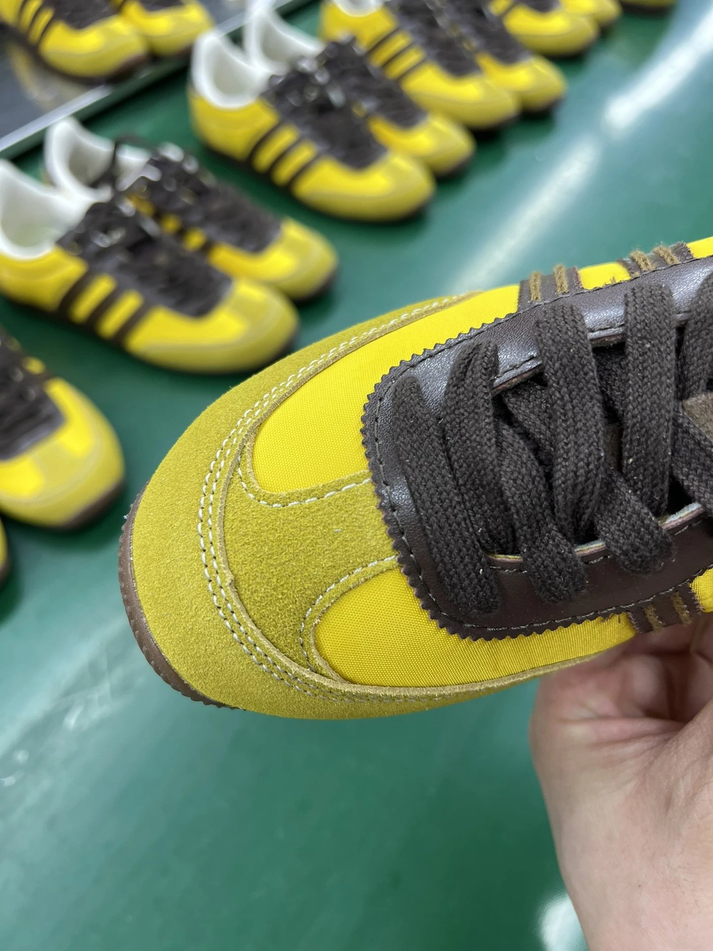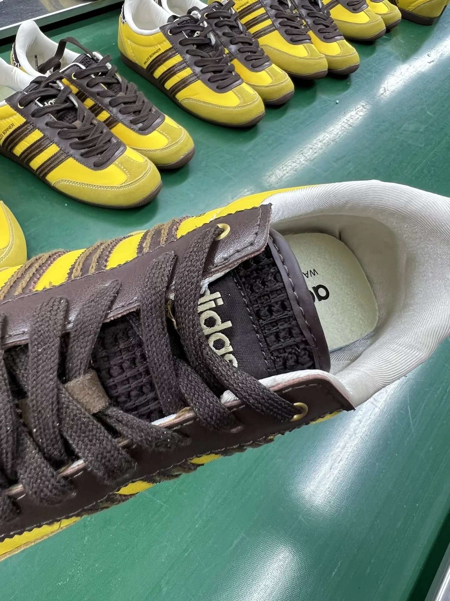 Example: Take photos of the logo, check stitching quality, measure the insole length, etc.