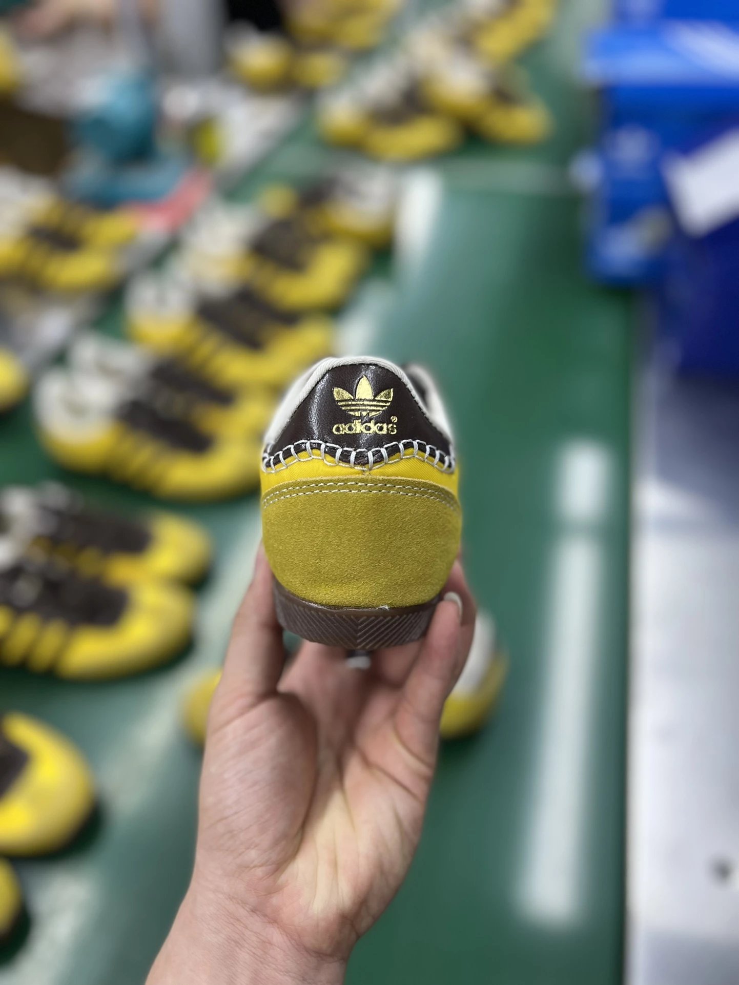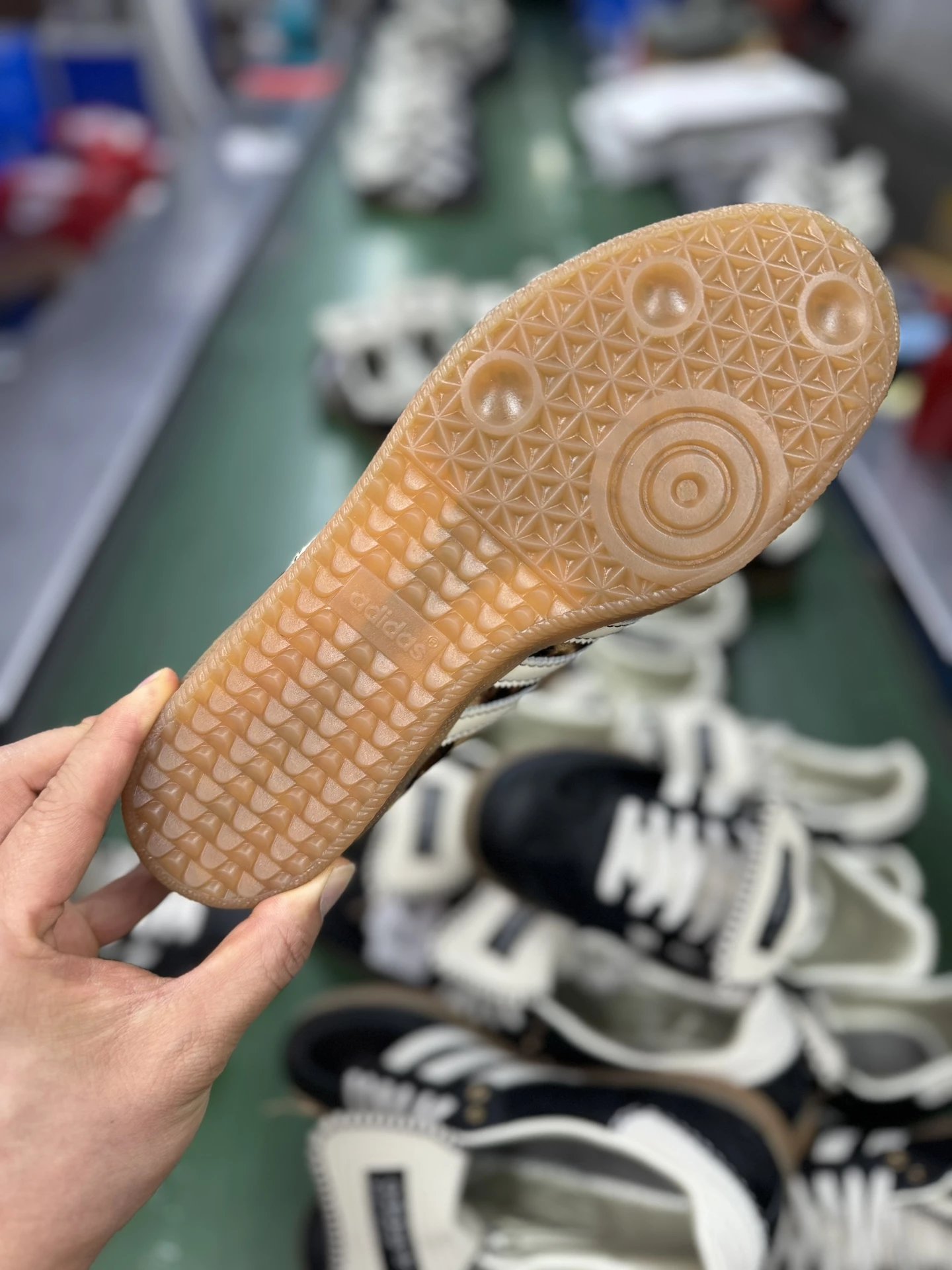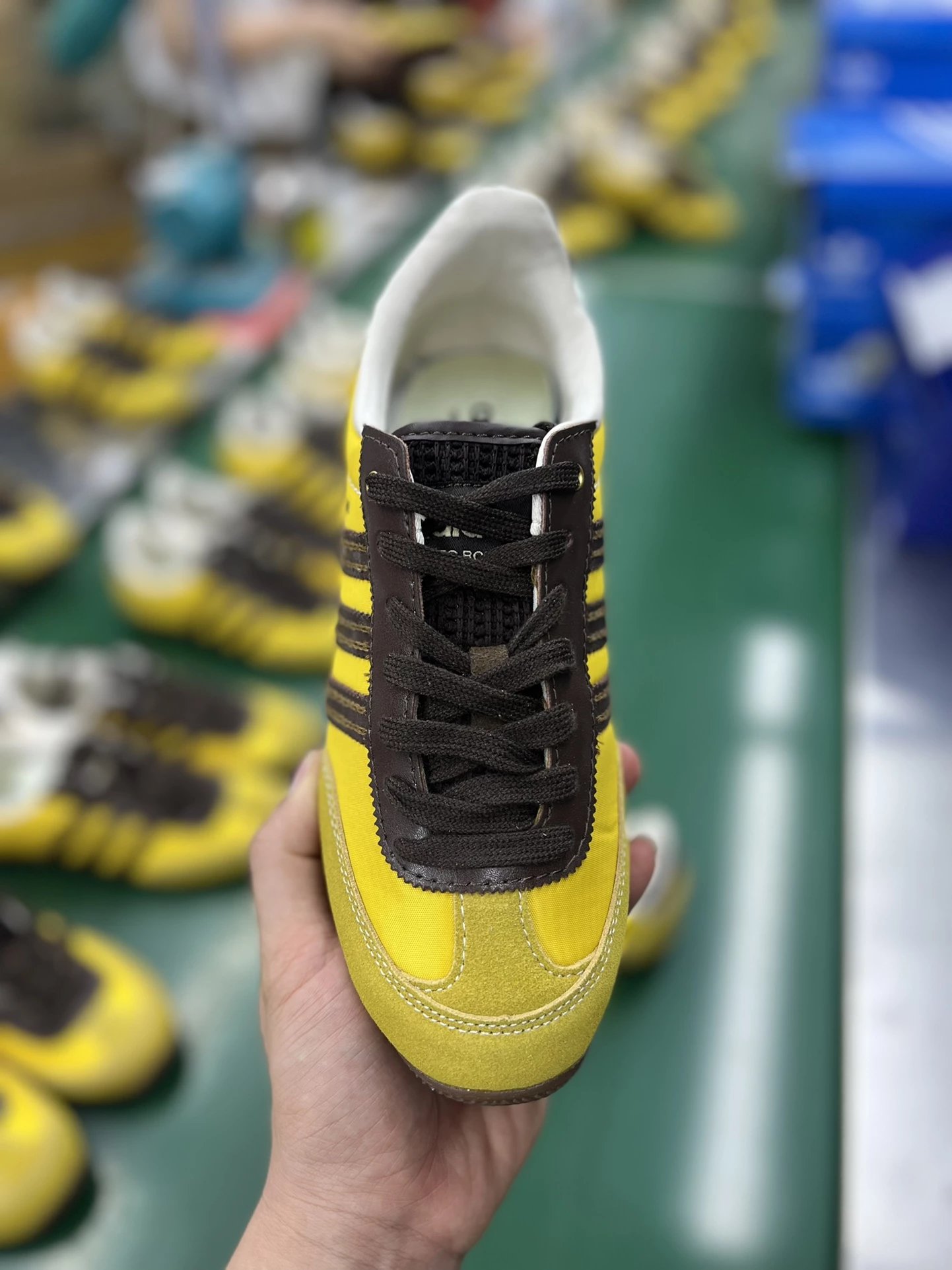 Example: Take photos of the logo, check stitching quality, measure the insole length, etc.