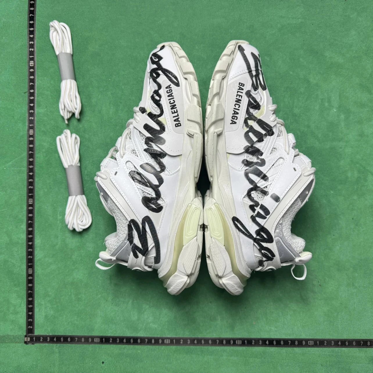 Example: Take photos of the logo, check stitching quality, measure the insole length, etc.