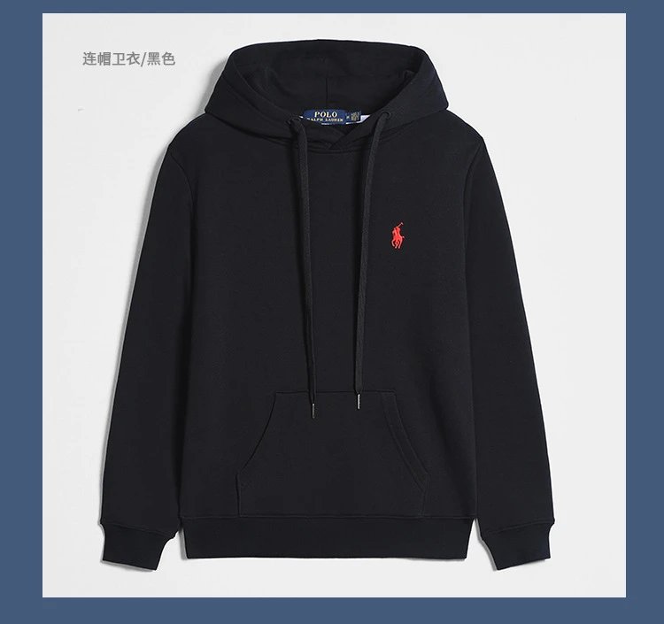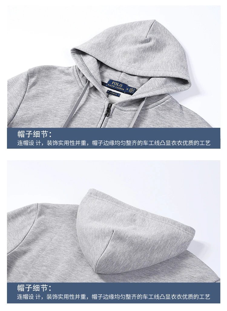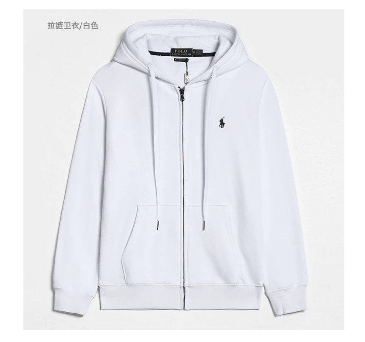 2024秋冬款男士休闲百搭Polo卫衣纯棉纯色刺绣小马标拉链套头开衫
