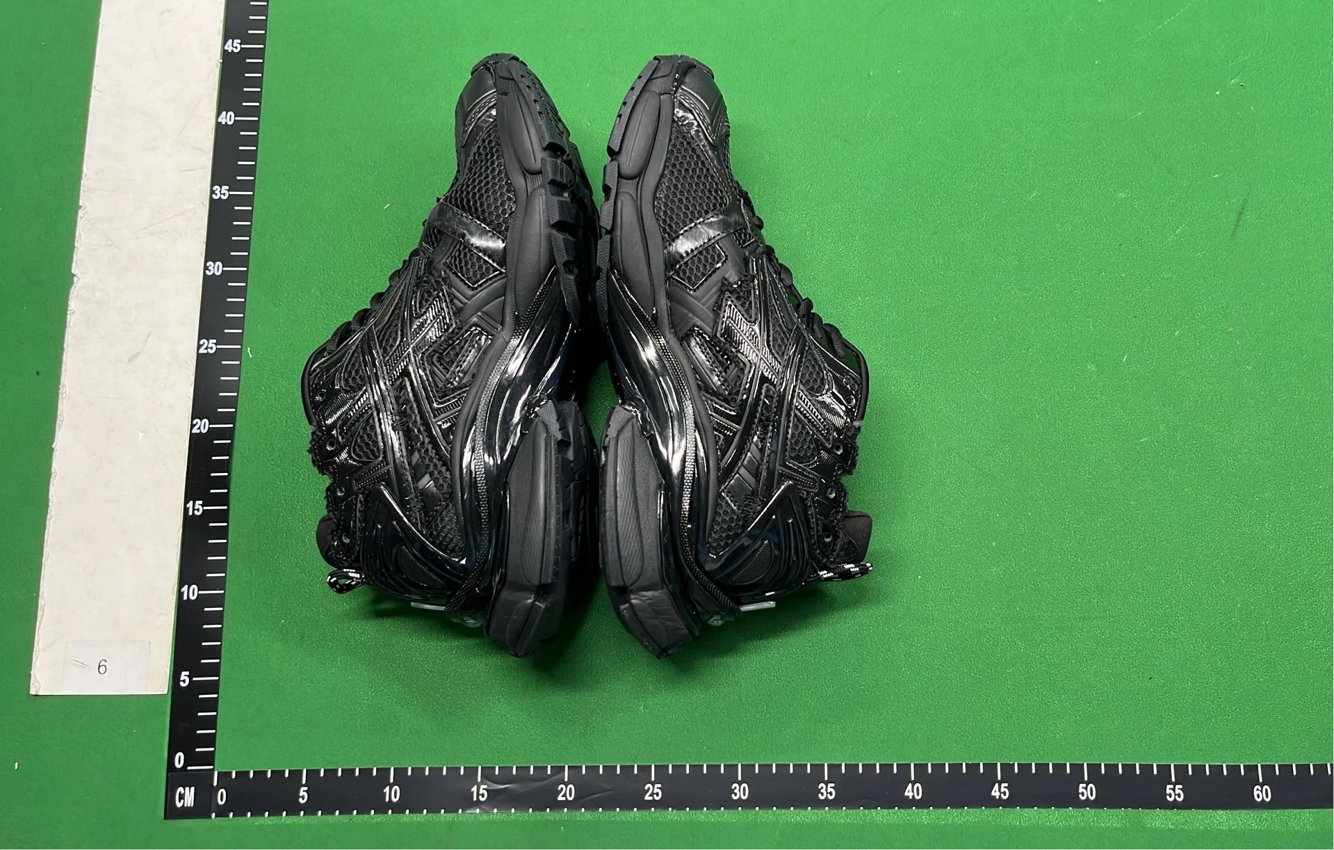 Example: Take photos of the logo, check stitching quality, measure the insole length, etc.