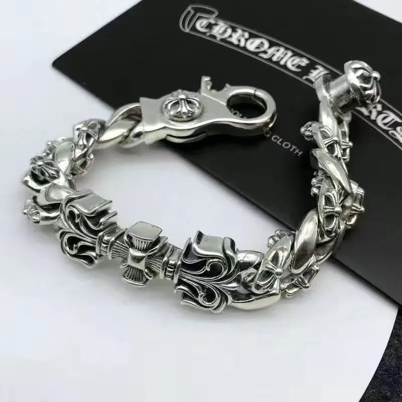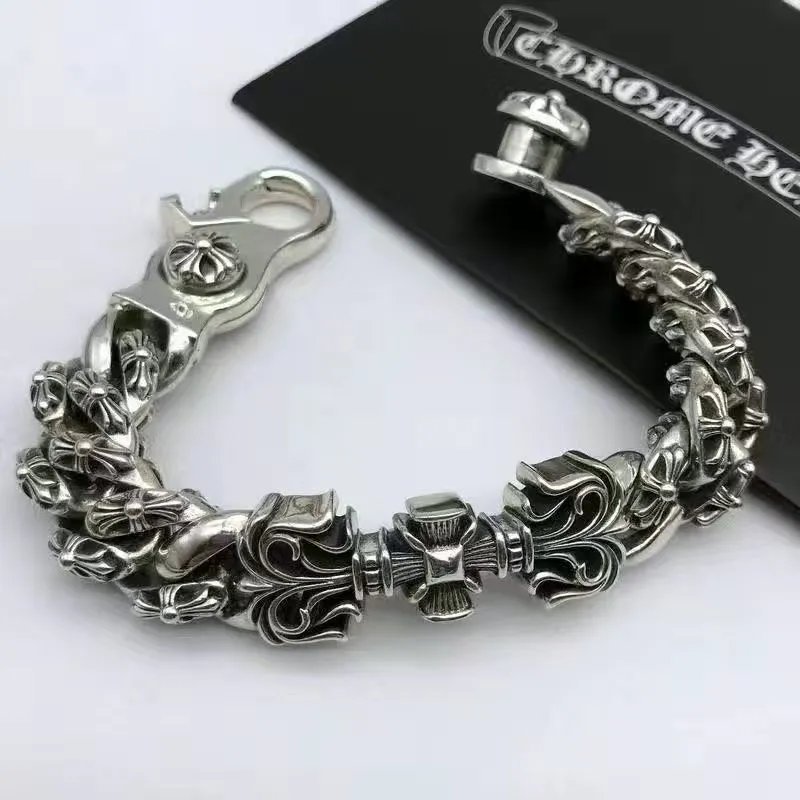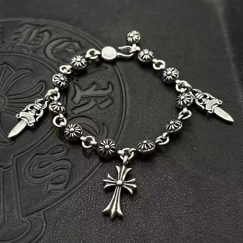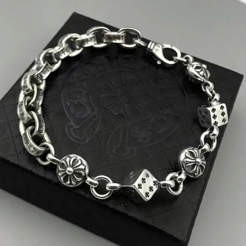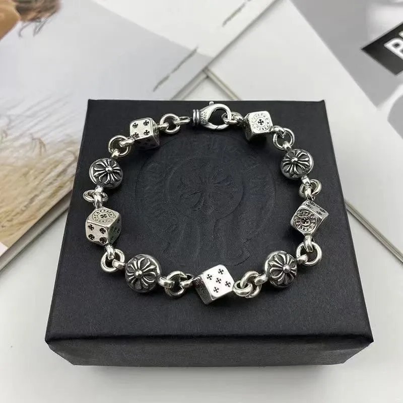 个性潮男时尚十字架手链男女日韩嘻哈潮人复古纯银骰子手链