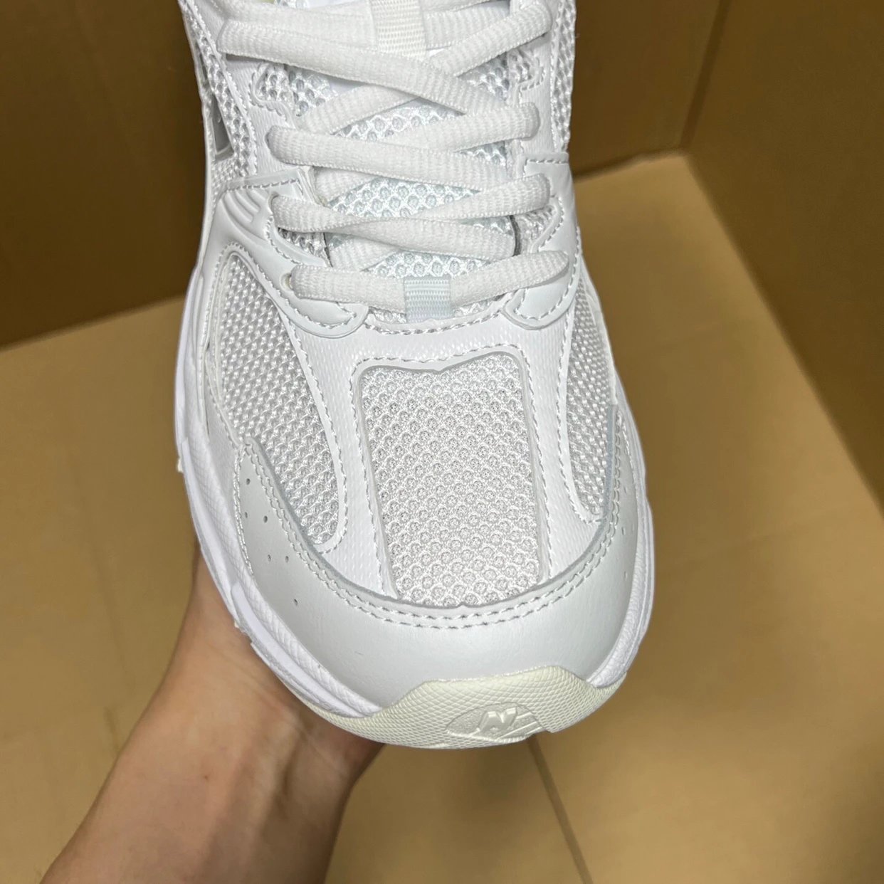 Example: Take photos of the logo, check stitching quality, measure the insole length, etc.
