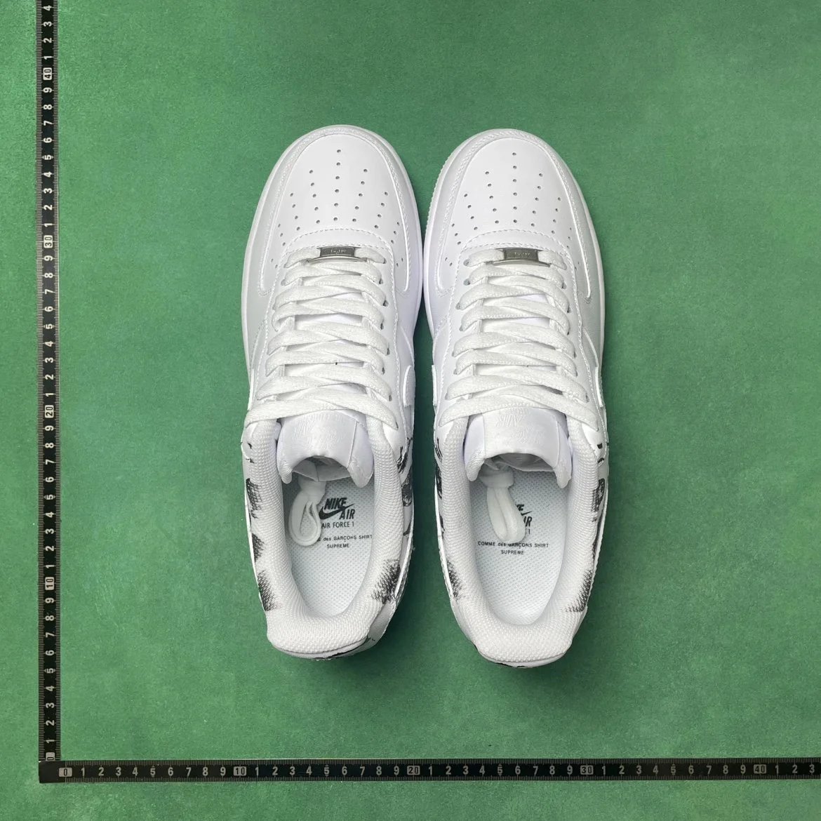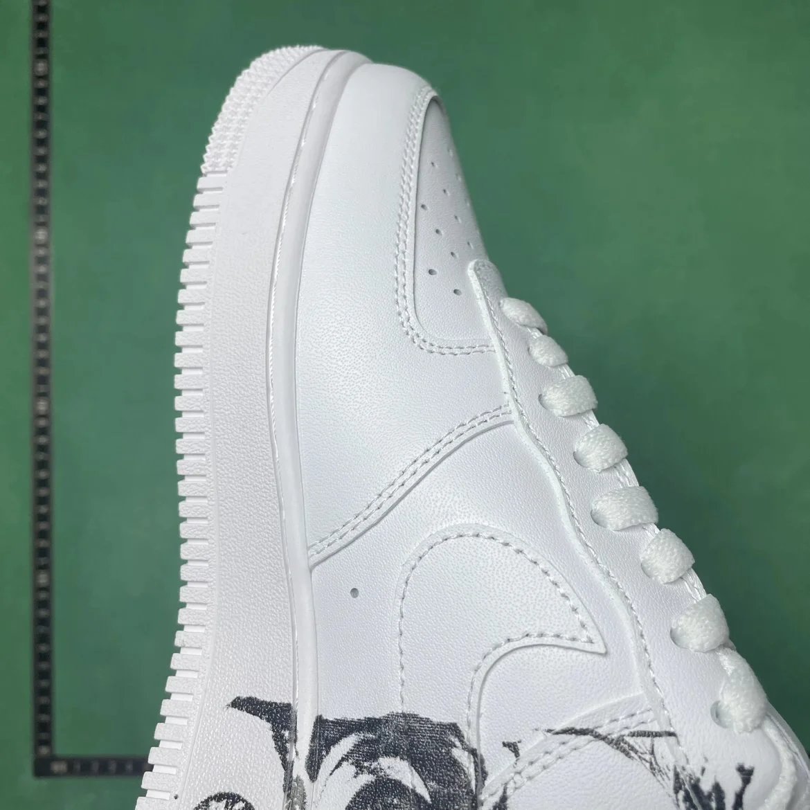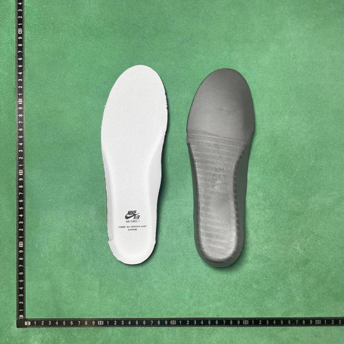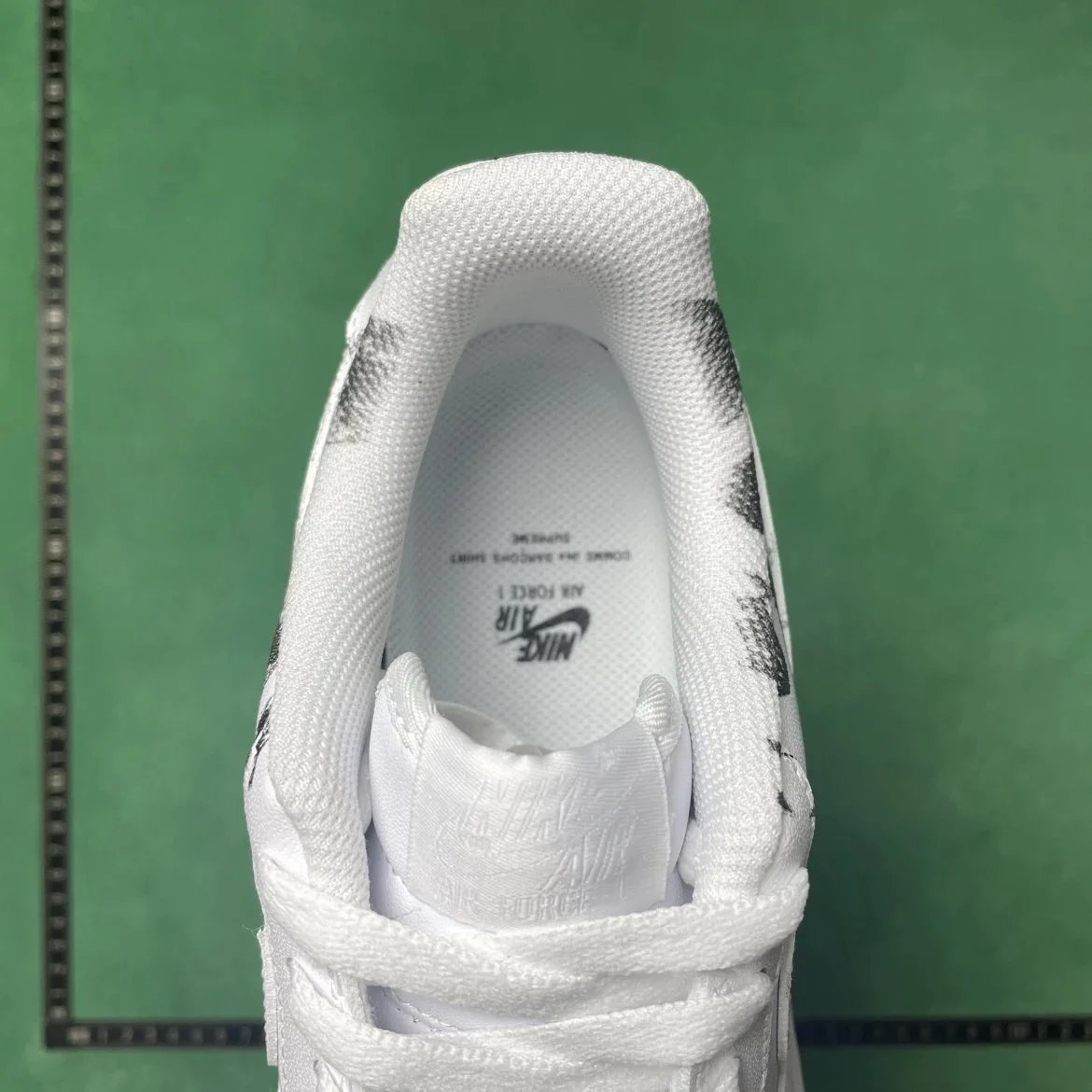 Example: Take photos of the logo, check stitching quality, measure the insole length, etc.