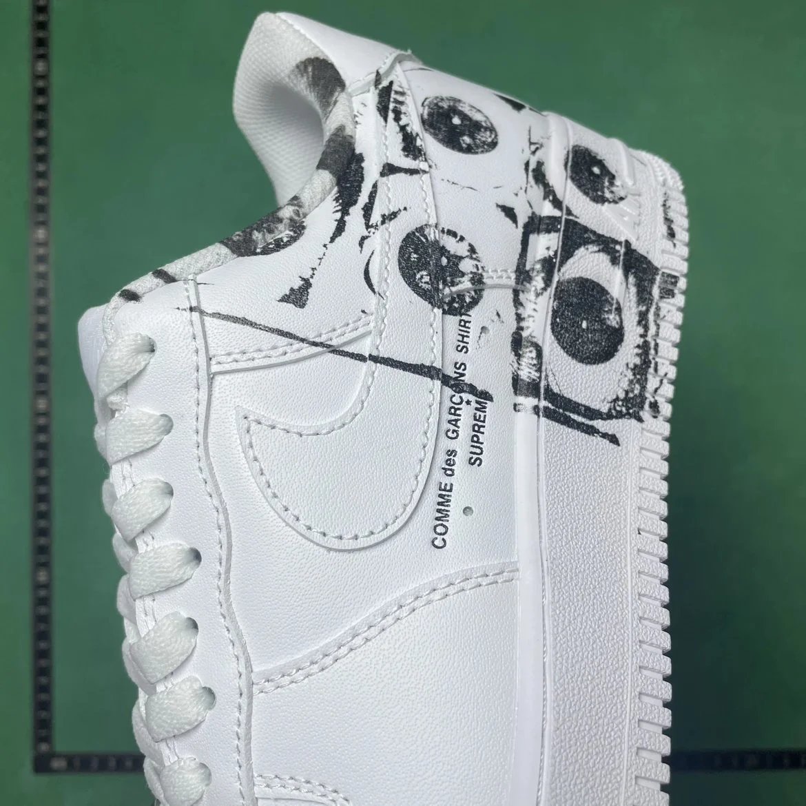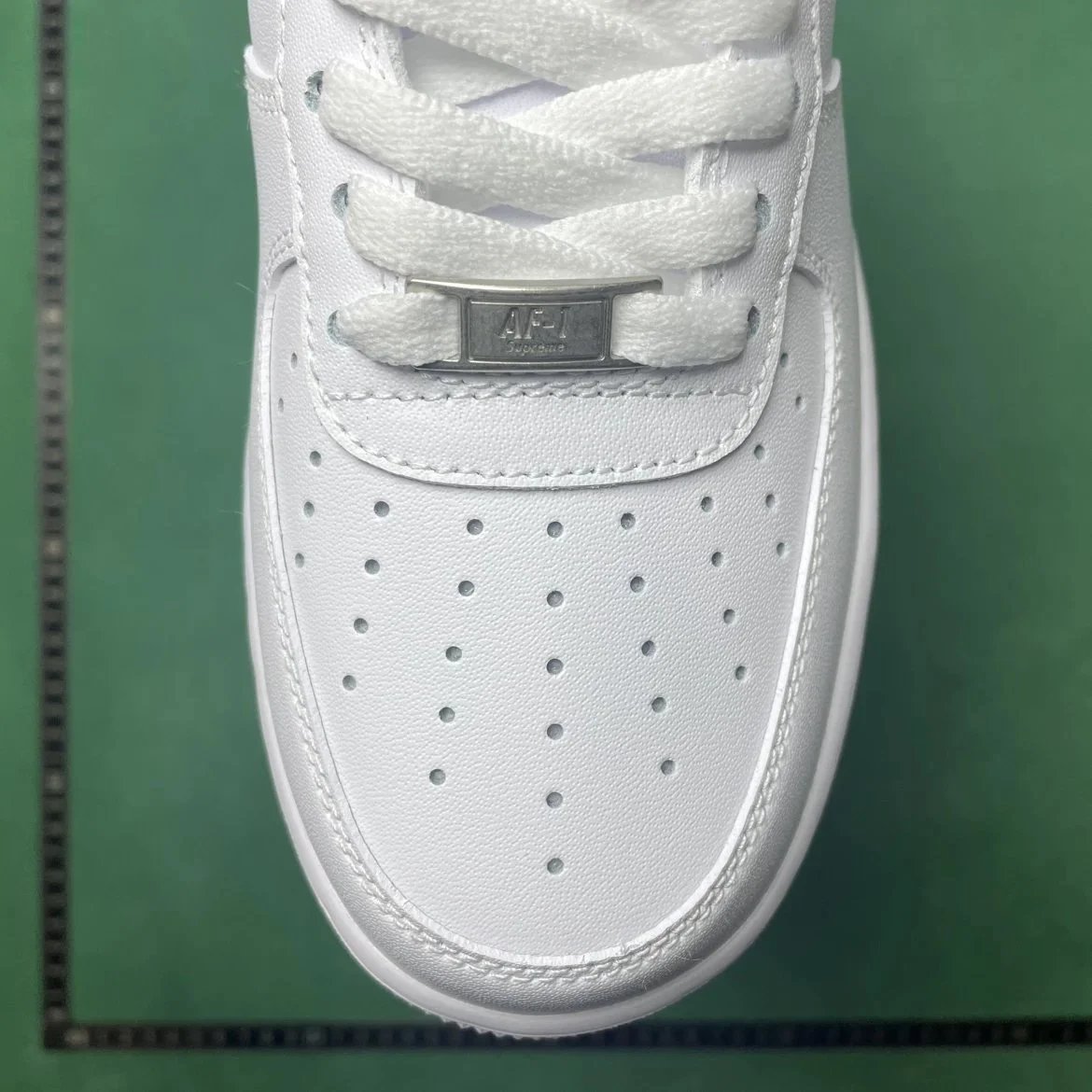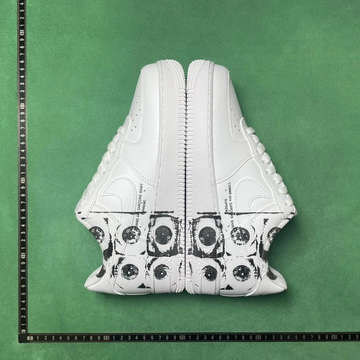 Example: Take photos of the logo, check stitching quality, measure the insole length, etc.