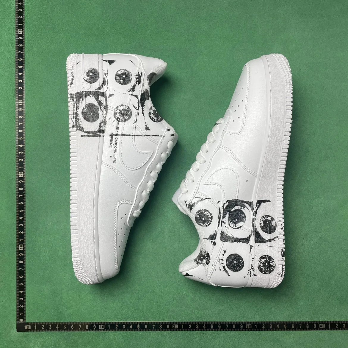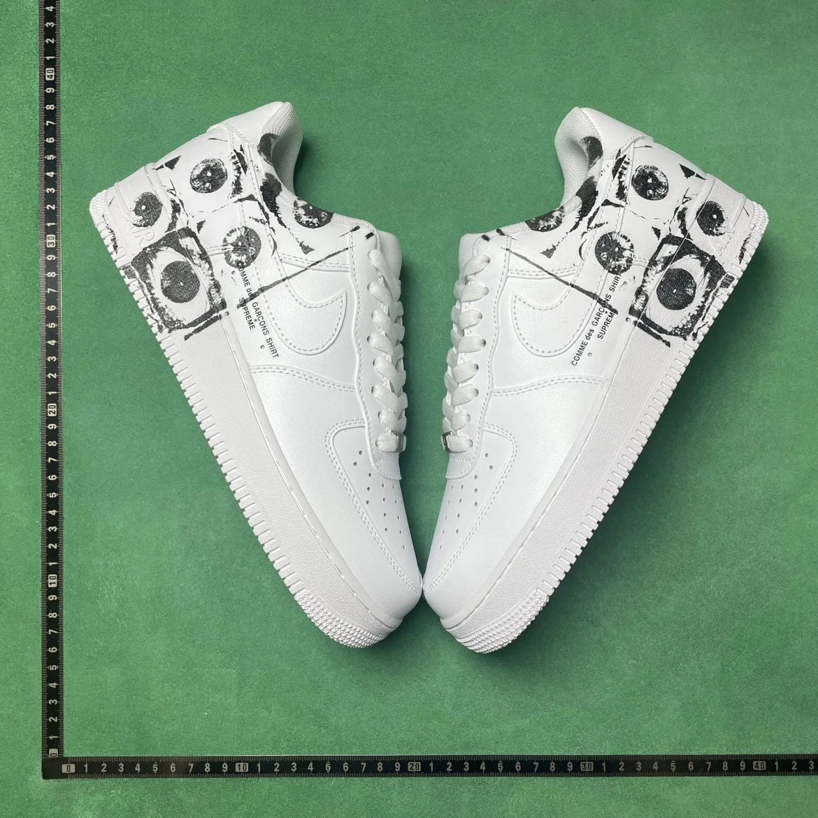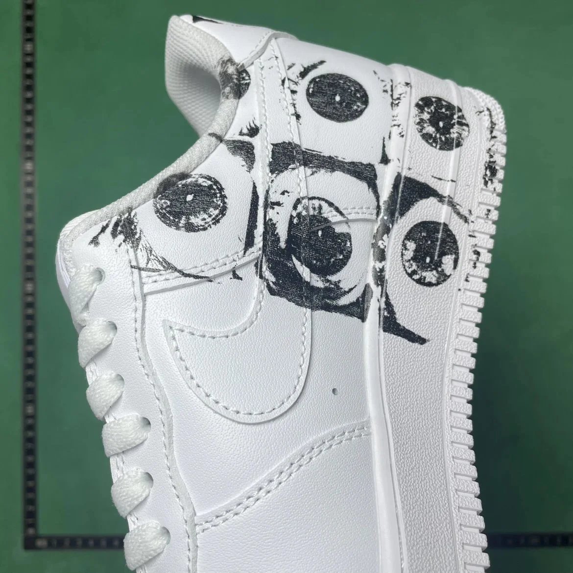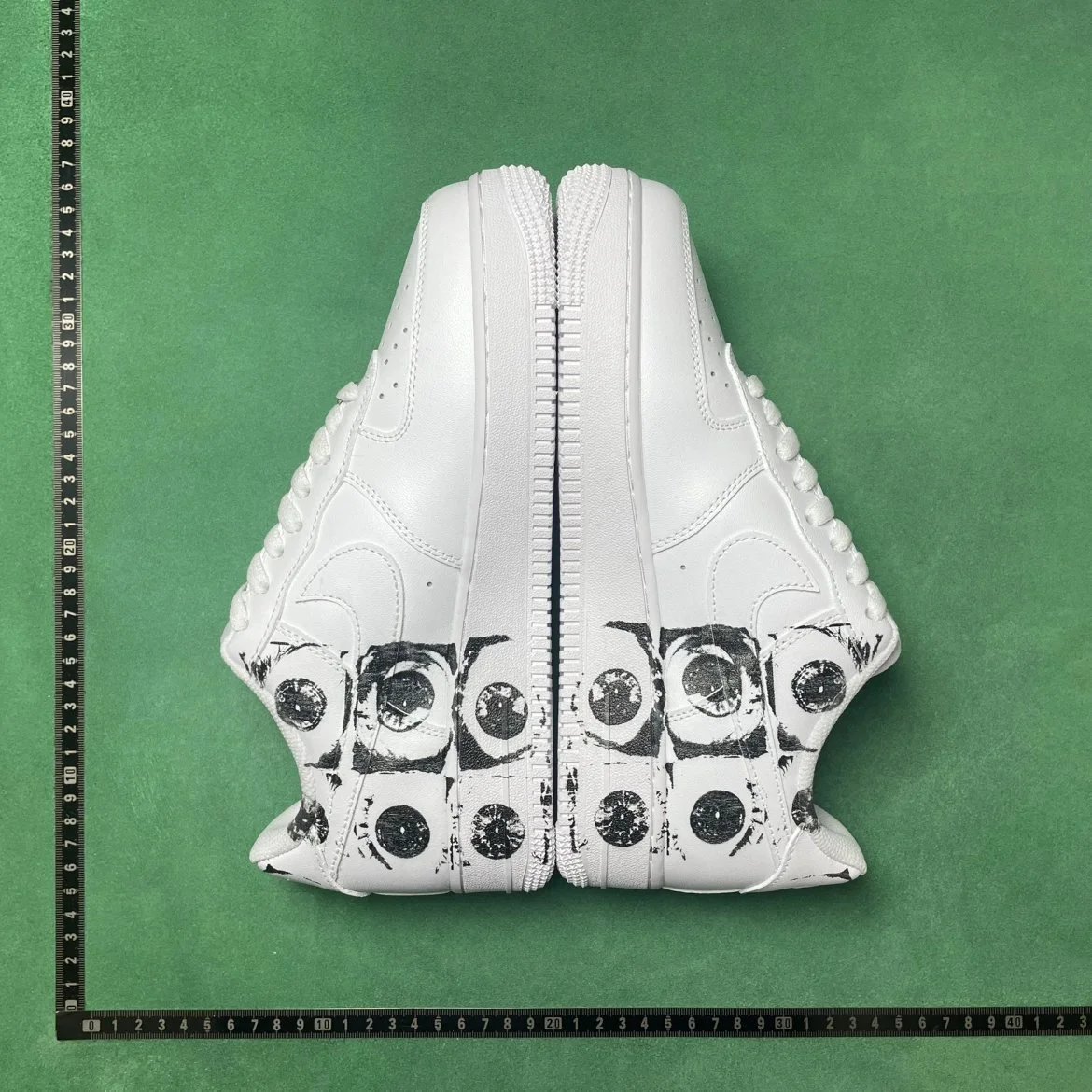 Example: Take photos of the logo, check stitching quality, measure the insole length, etc.