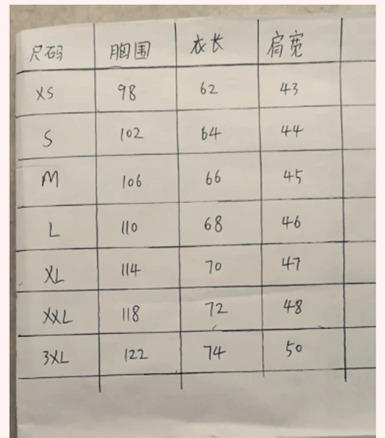 尺码:XXXL