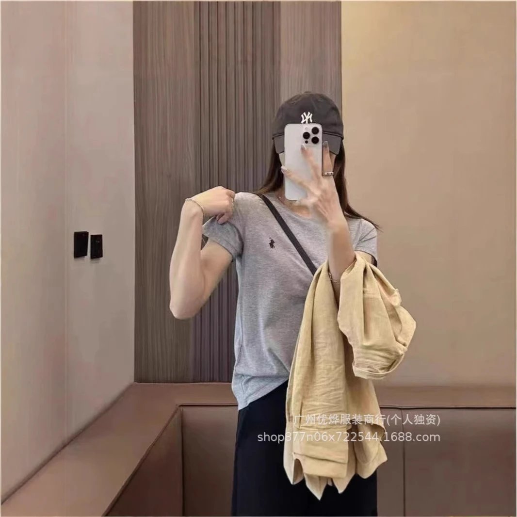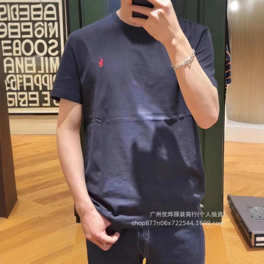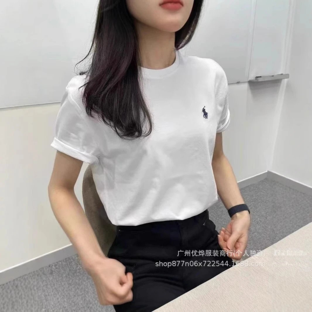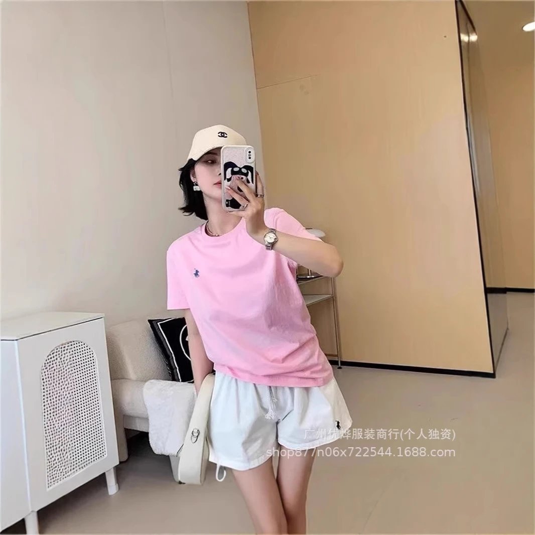 跨境外贸夏季圆领小马刺绣t恤男女同款纯棉短袖宽松休闲百搭R上衣