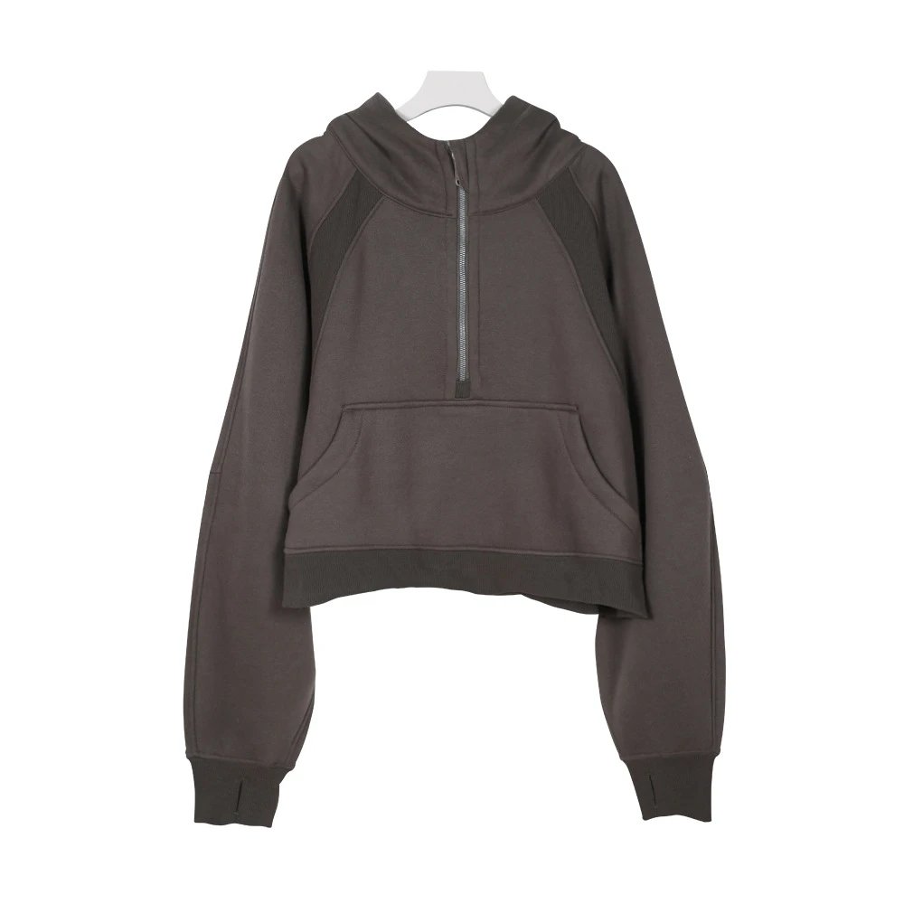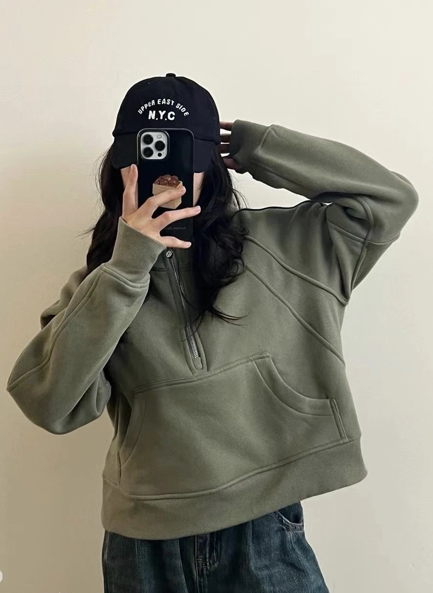 拉链帽衫卫衣加绒秋冬原标半瑜伽女士Scubahalfzip外套宽松连帽刺绣无质量问题不可随意无理由退货