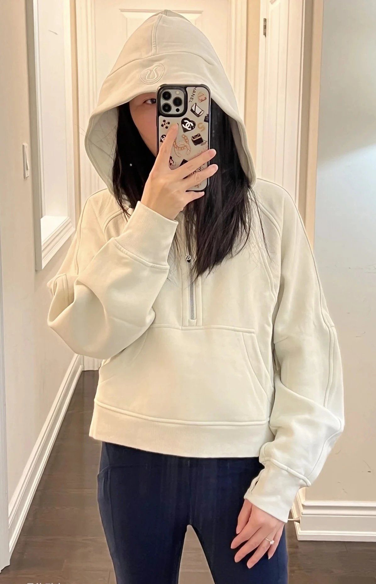 颜色:骨白半拉连帽