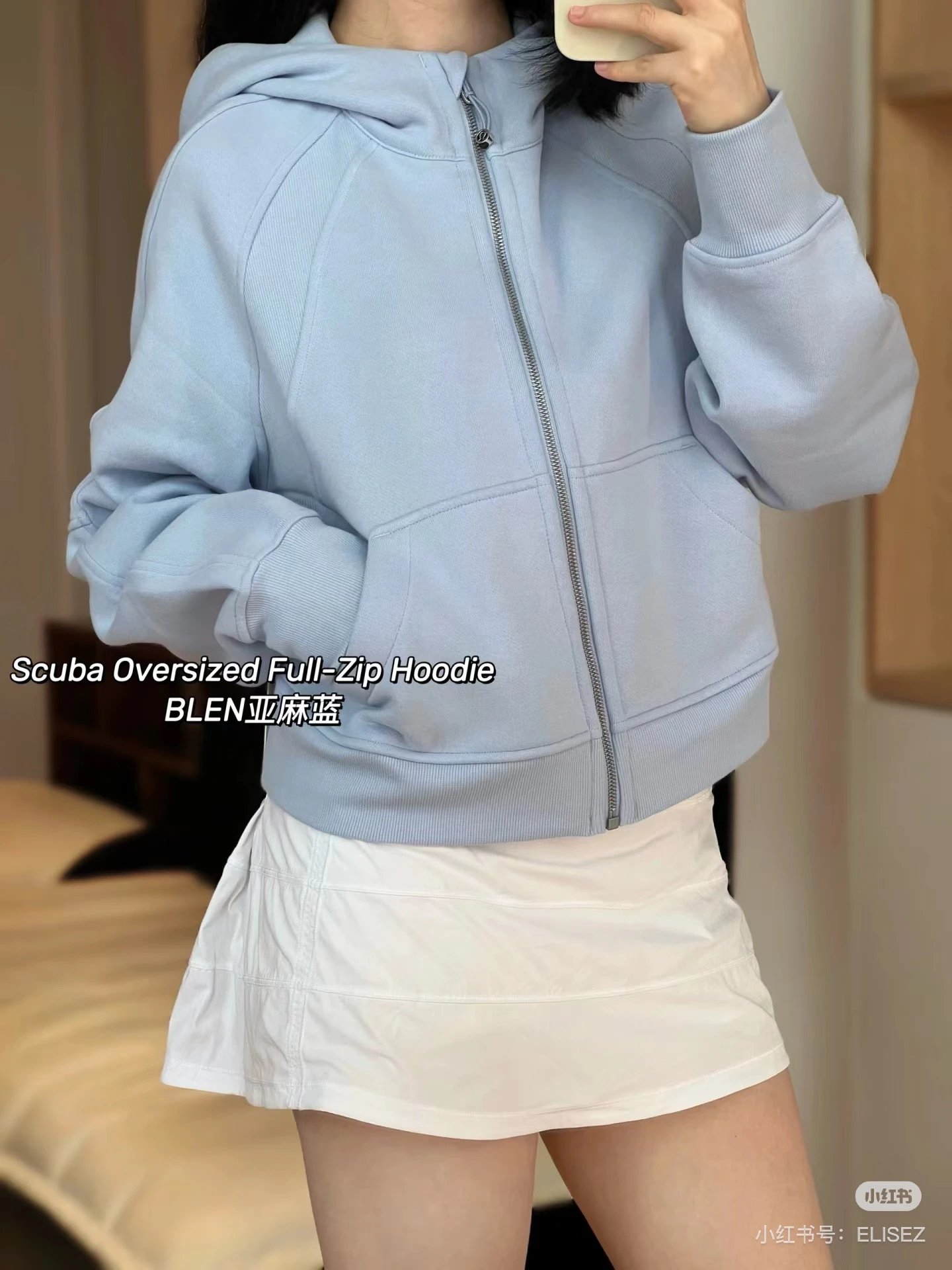 颜色:亚麻蓝宽松全拉卫衣
