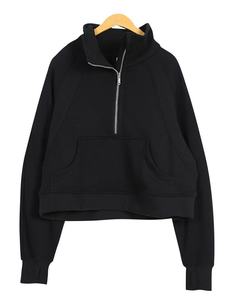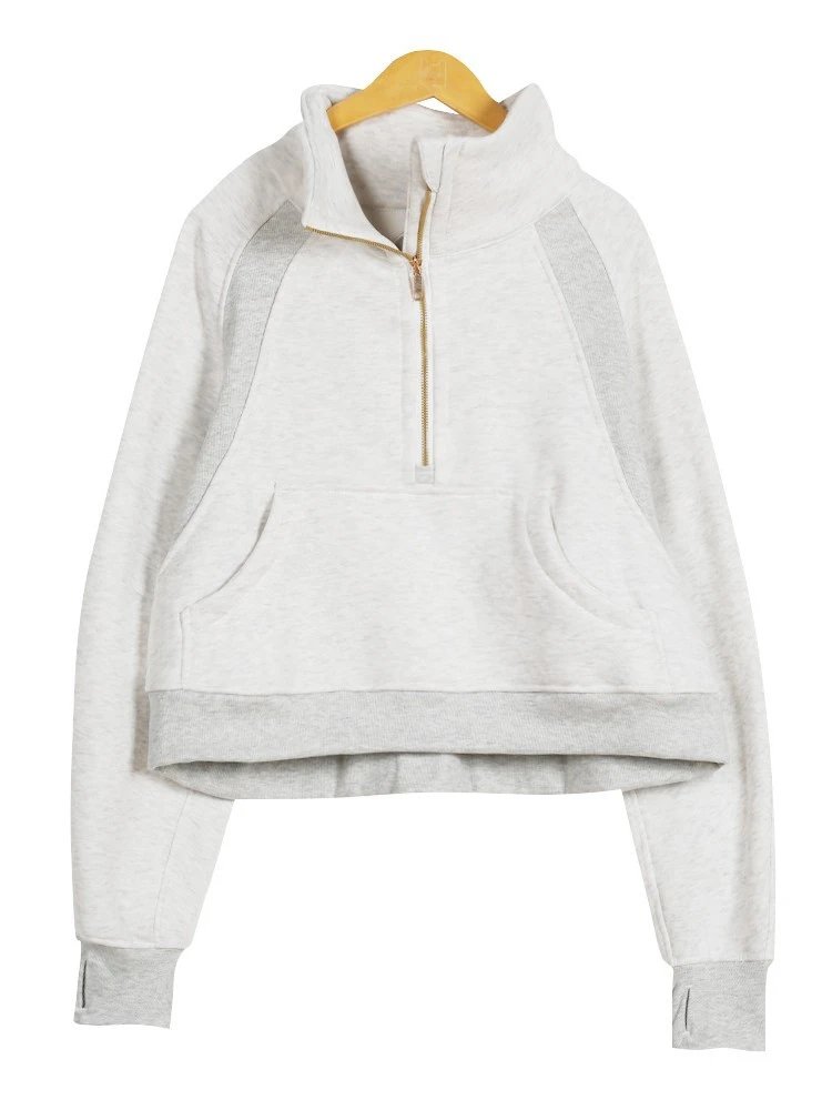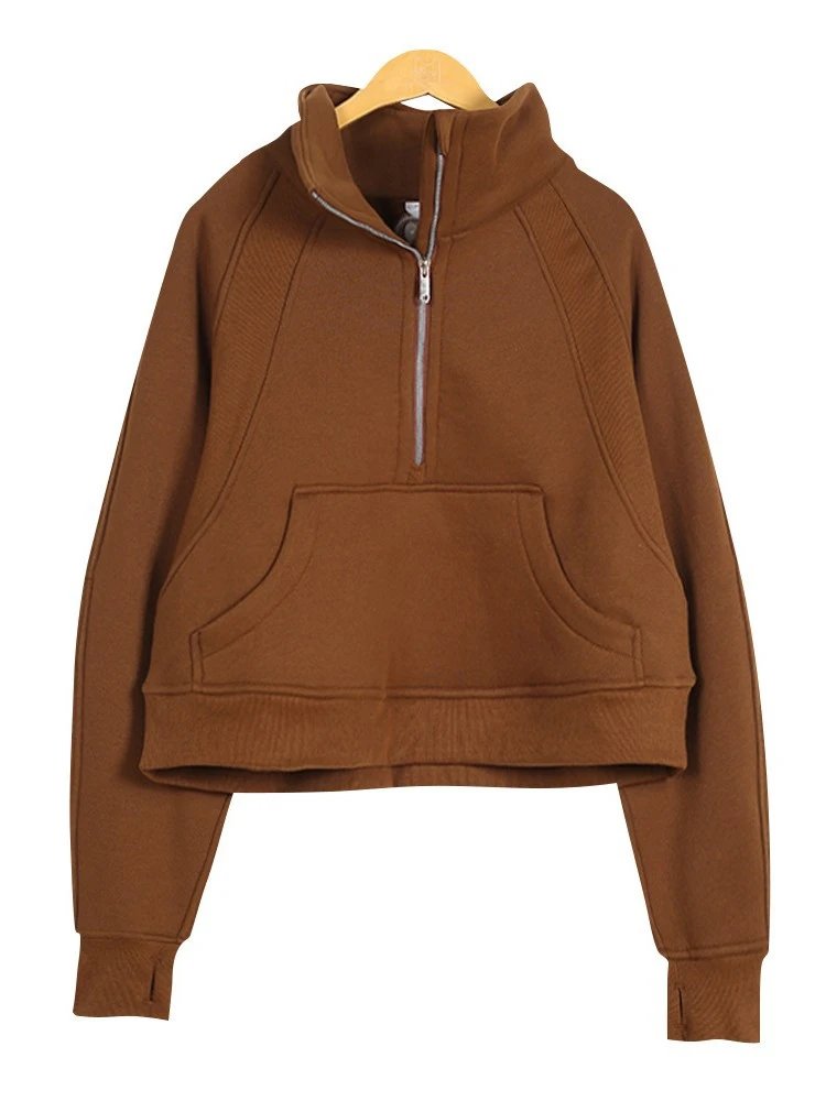 半Scuba运动加绒高领长袖宽松外套卫衣女士拉链健身刺绣无质量原因不可以无理由退货