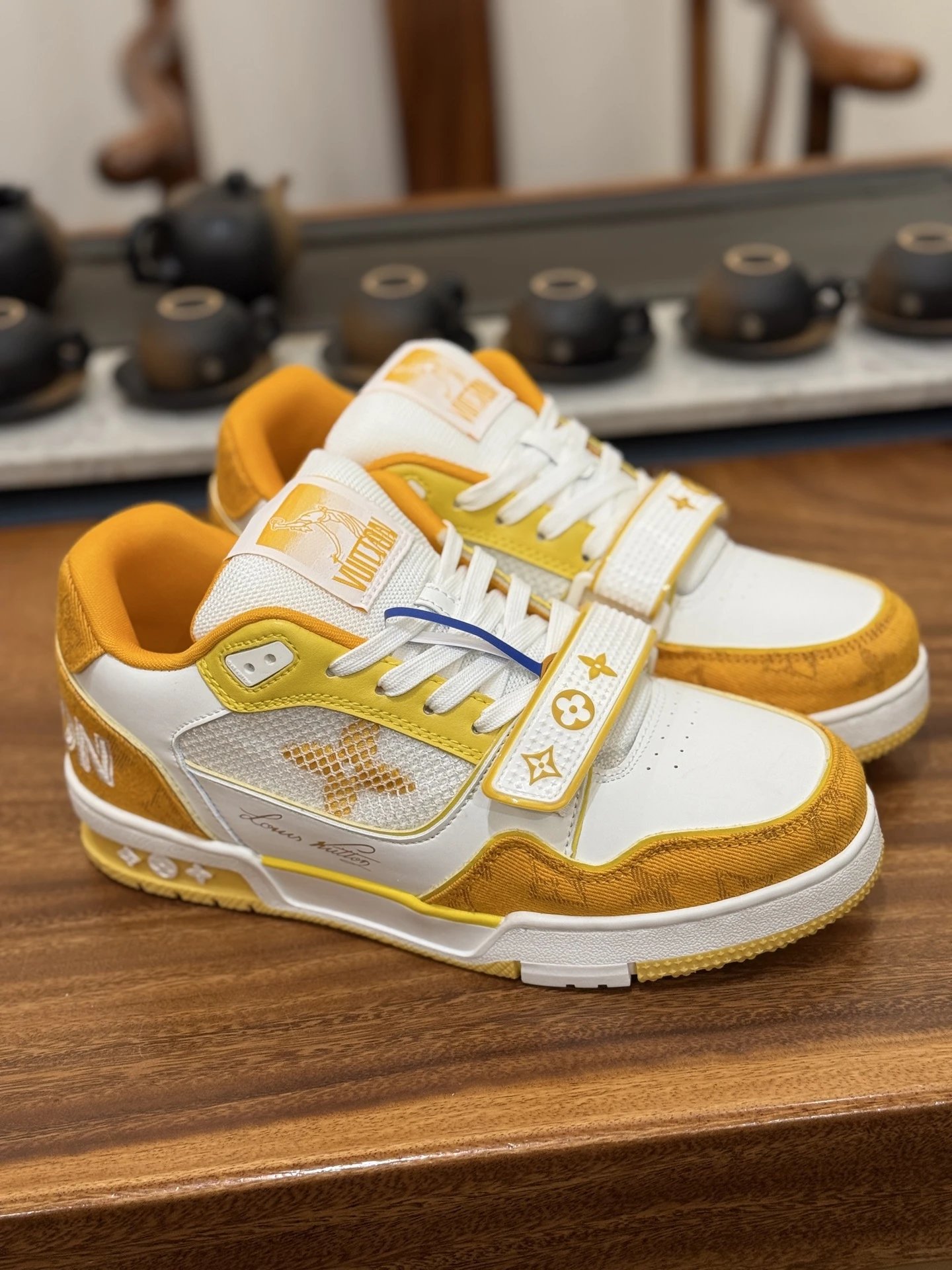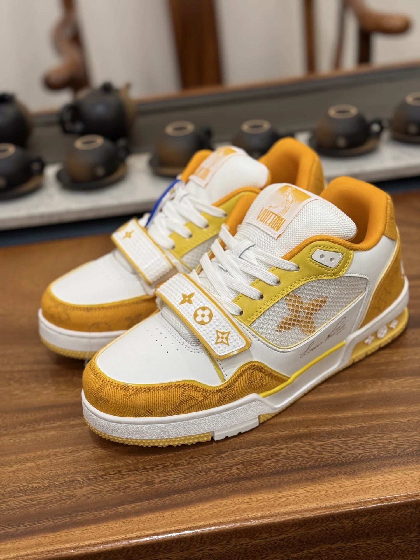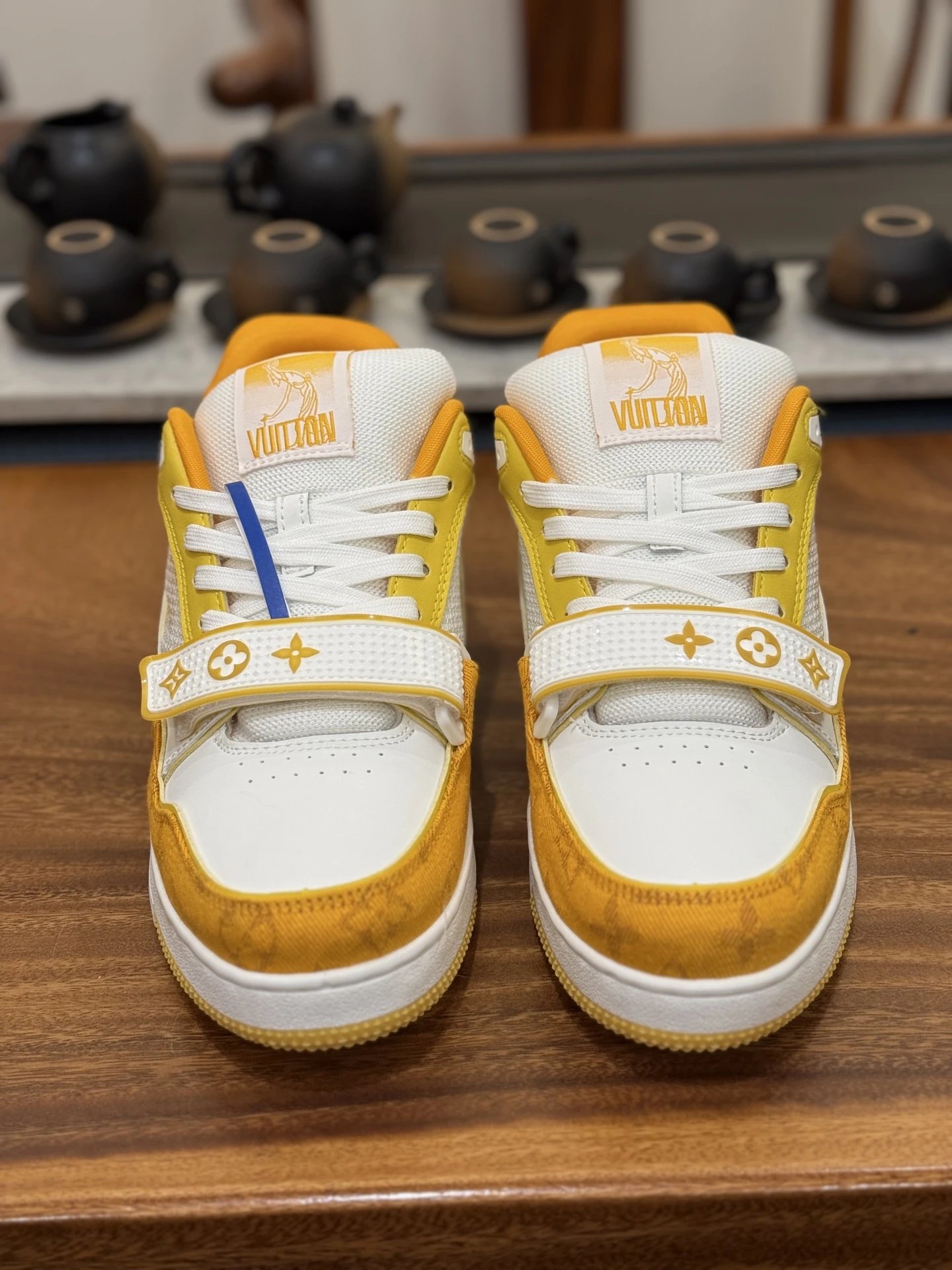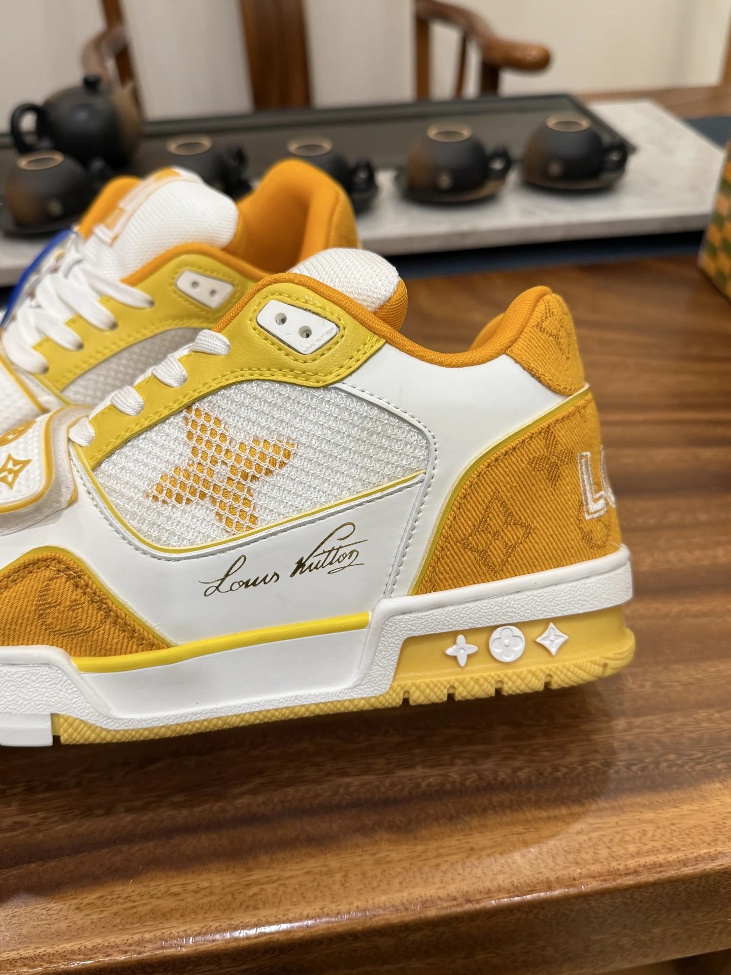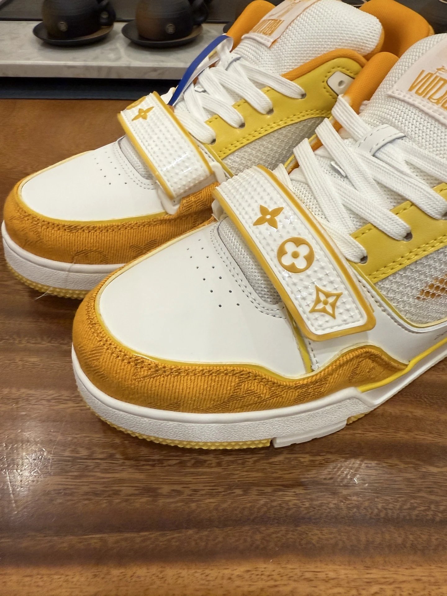 Example: Take photos of the logo, check stitching quality, measure the insole length, etc.