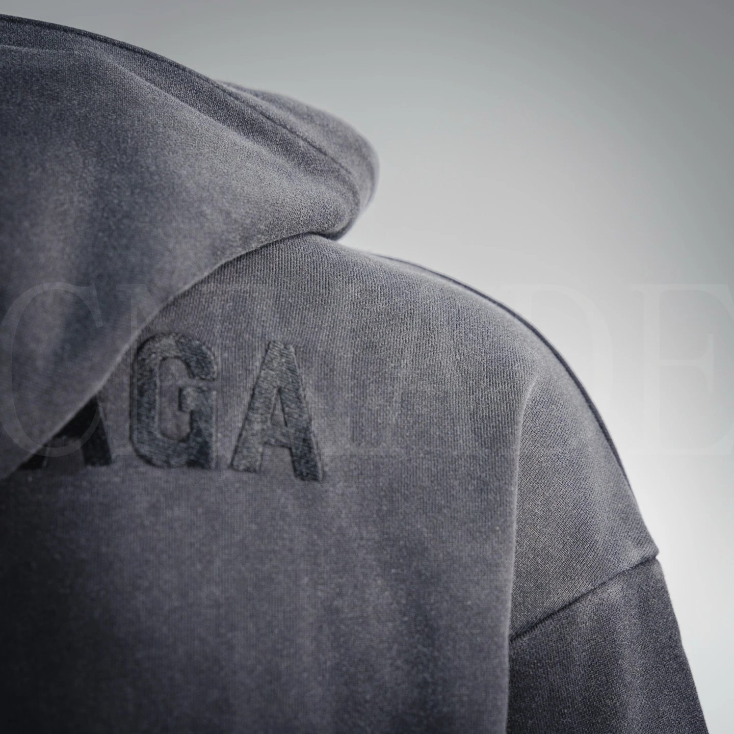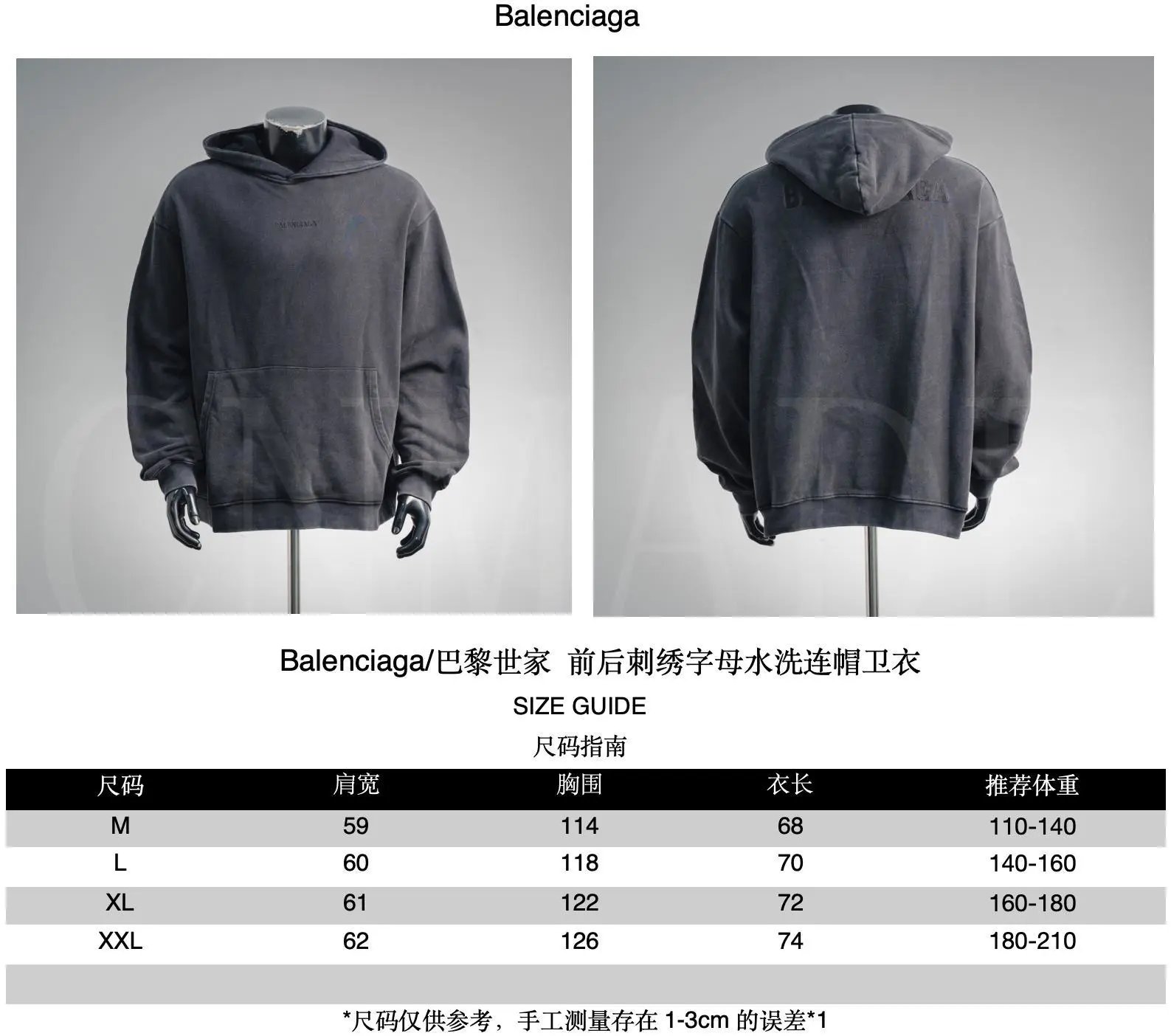 颜色:黑色-前后刺绣字母水洗连帽卫衣