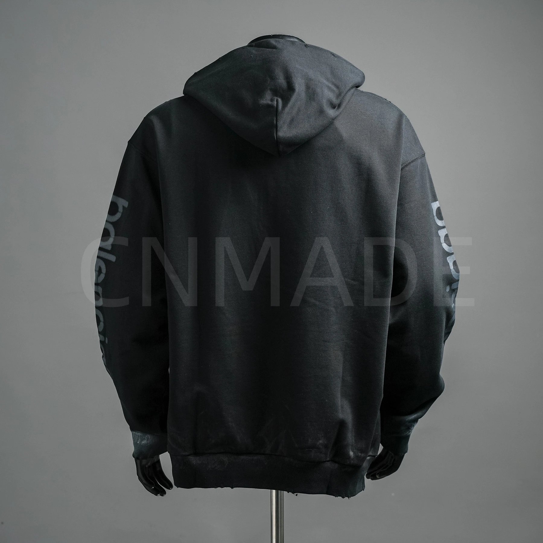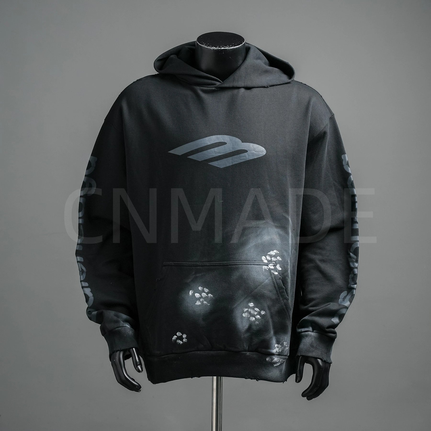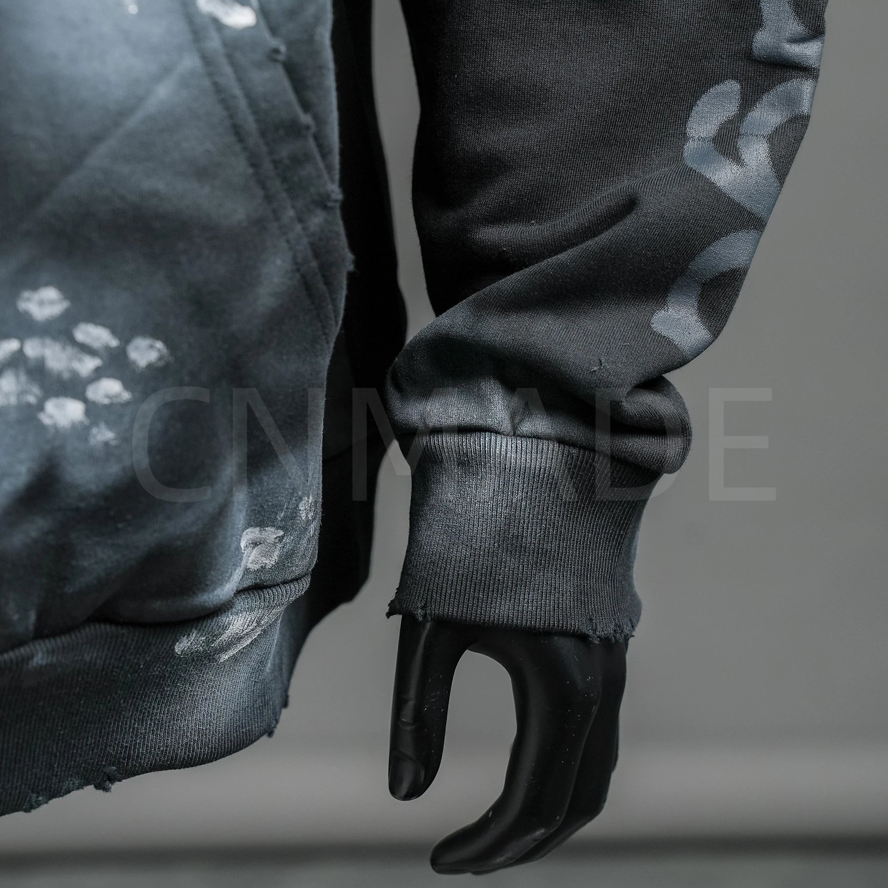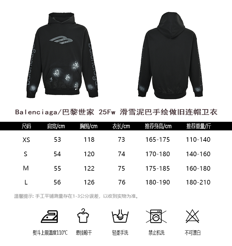 颜色:黑色-25Fw 滑雪泥巴手绘做旧连帽卫衣