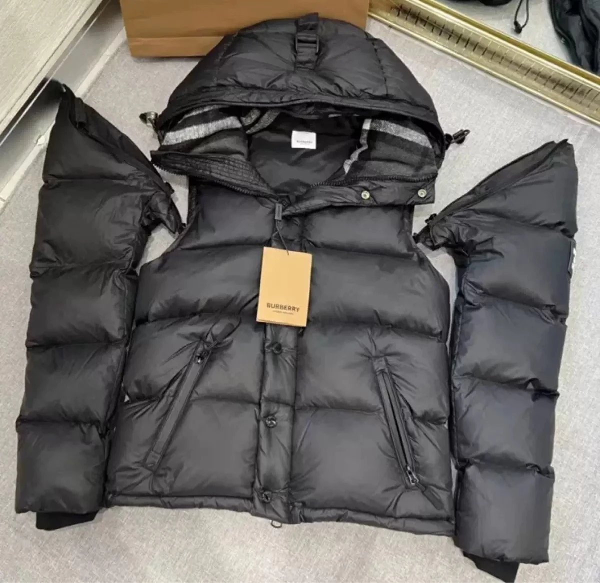 颜色:Burberry最高品质<90%白鸭绒 黑色 袖子可拆卸