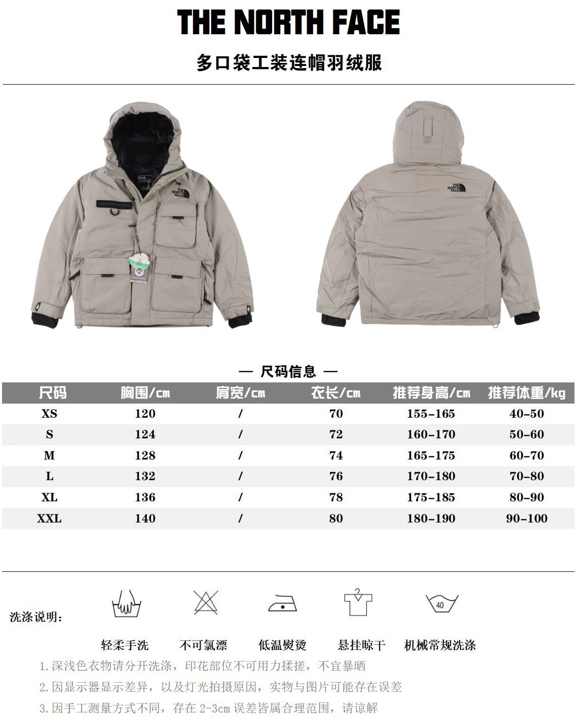 南面多口袋工装连帽羽绒服