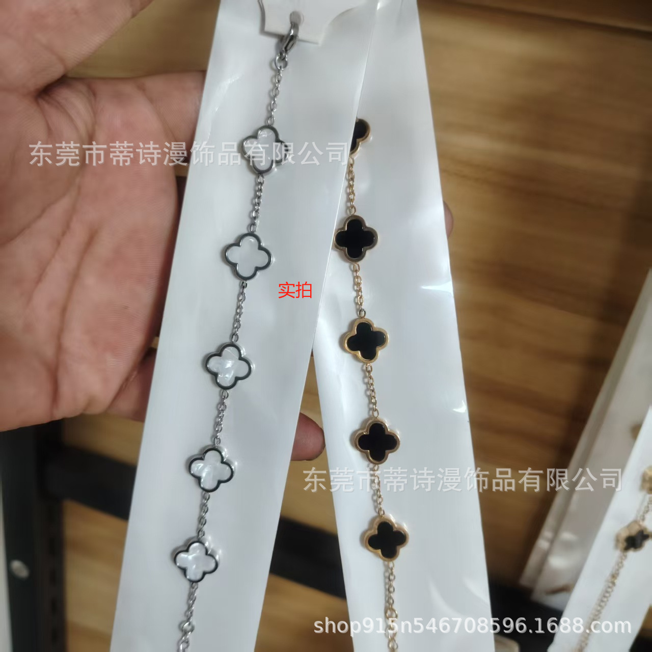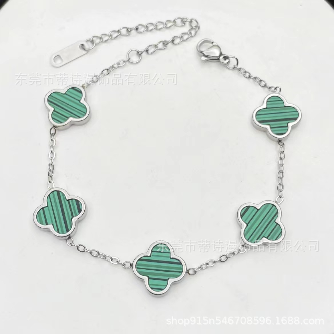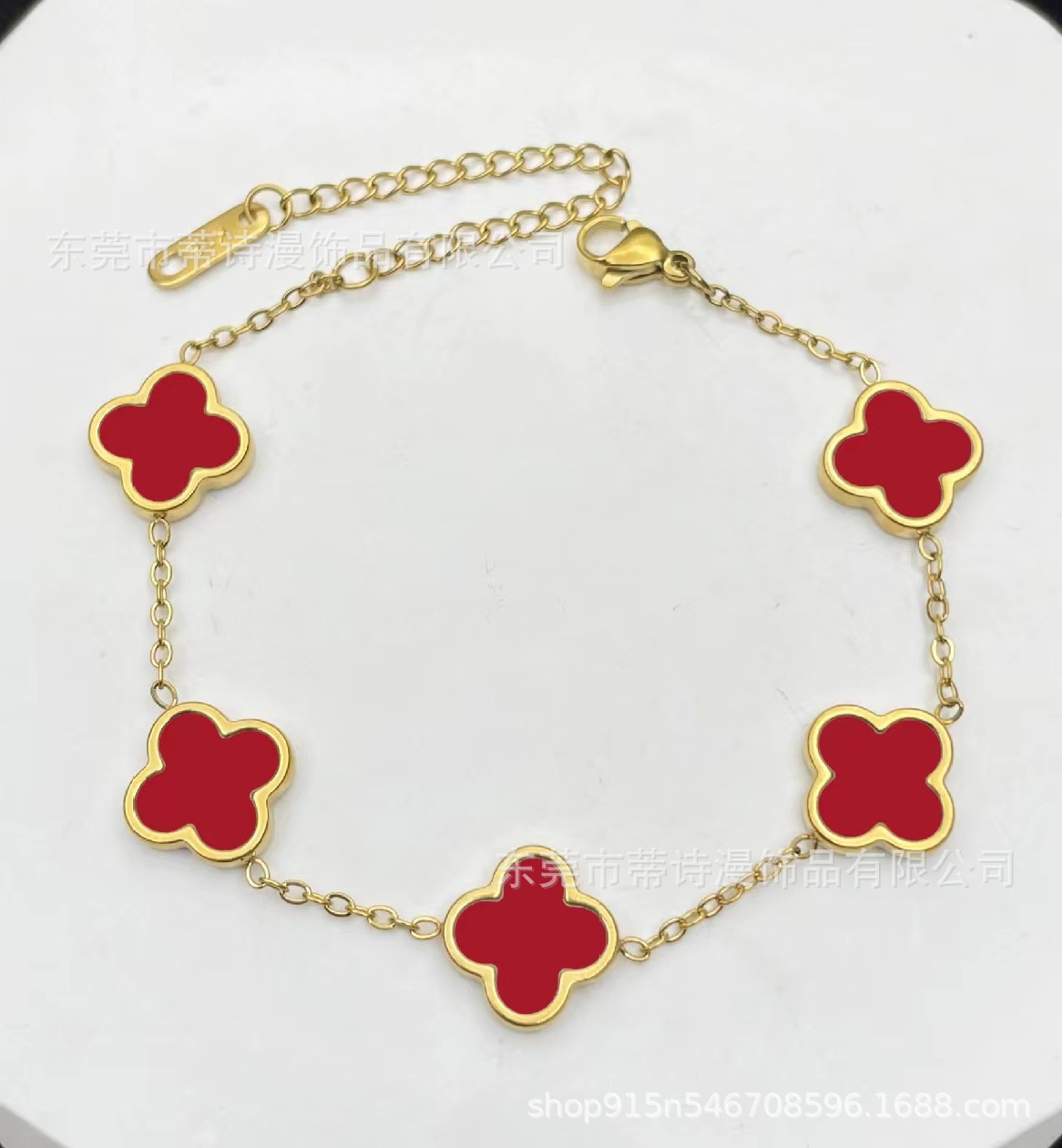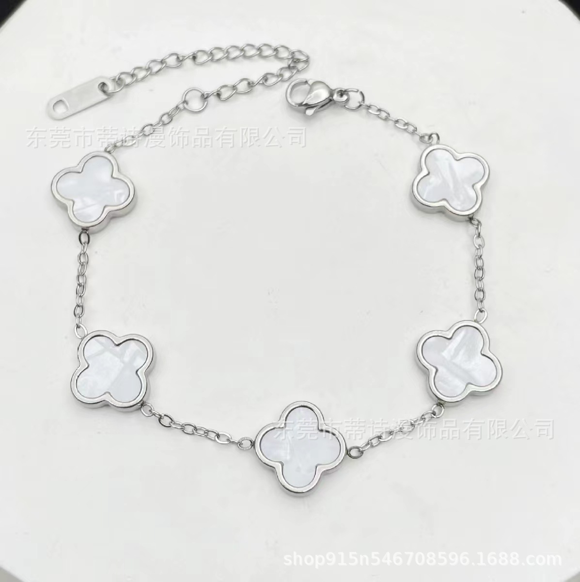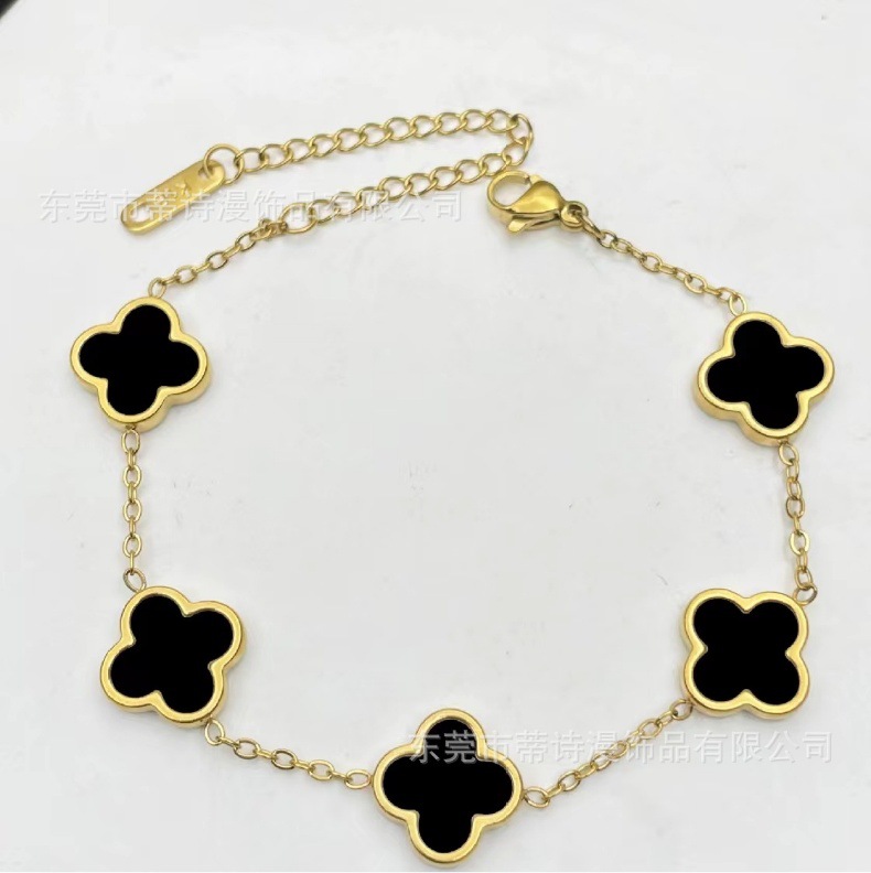 爆款光面四叶草手链钛钢18K金双面贝母手链手饰品厂家批发