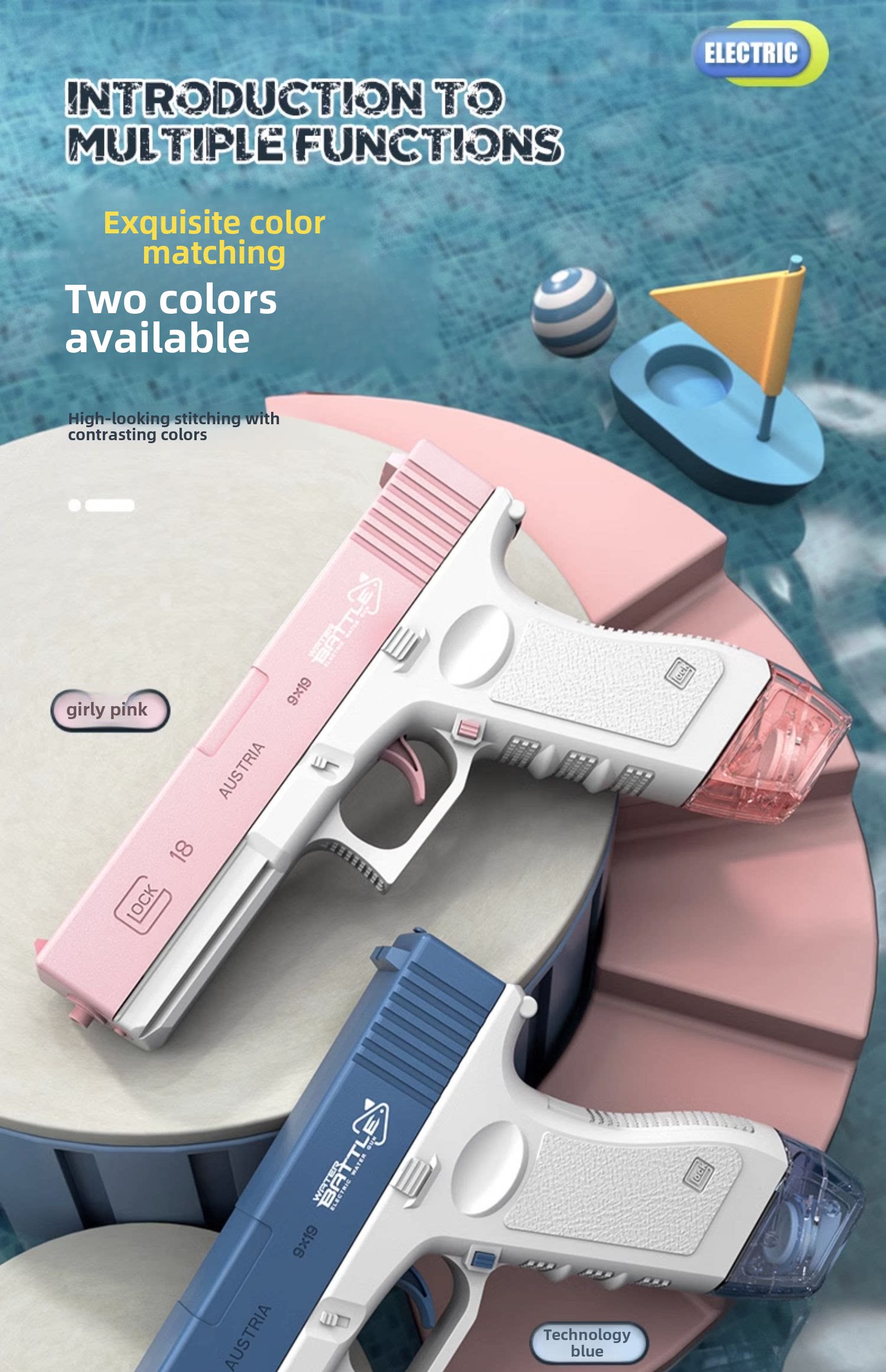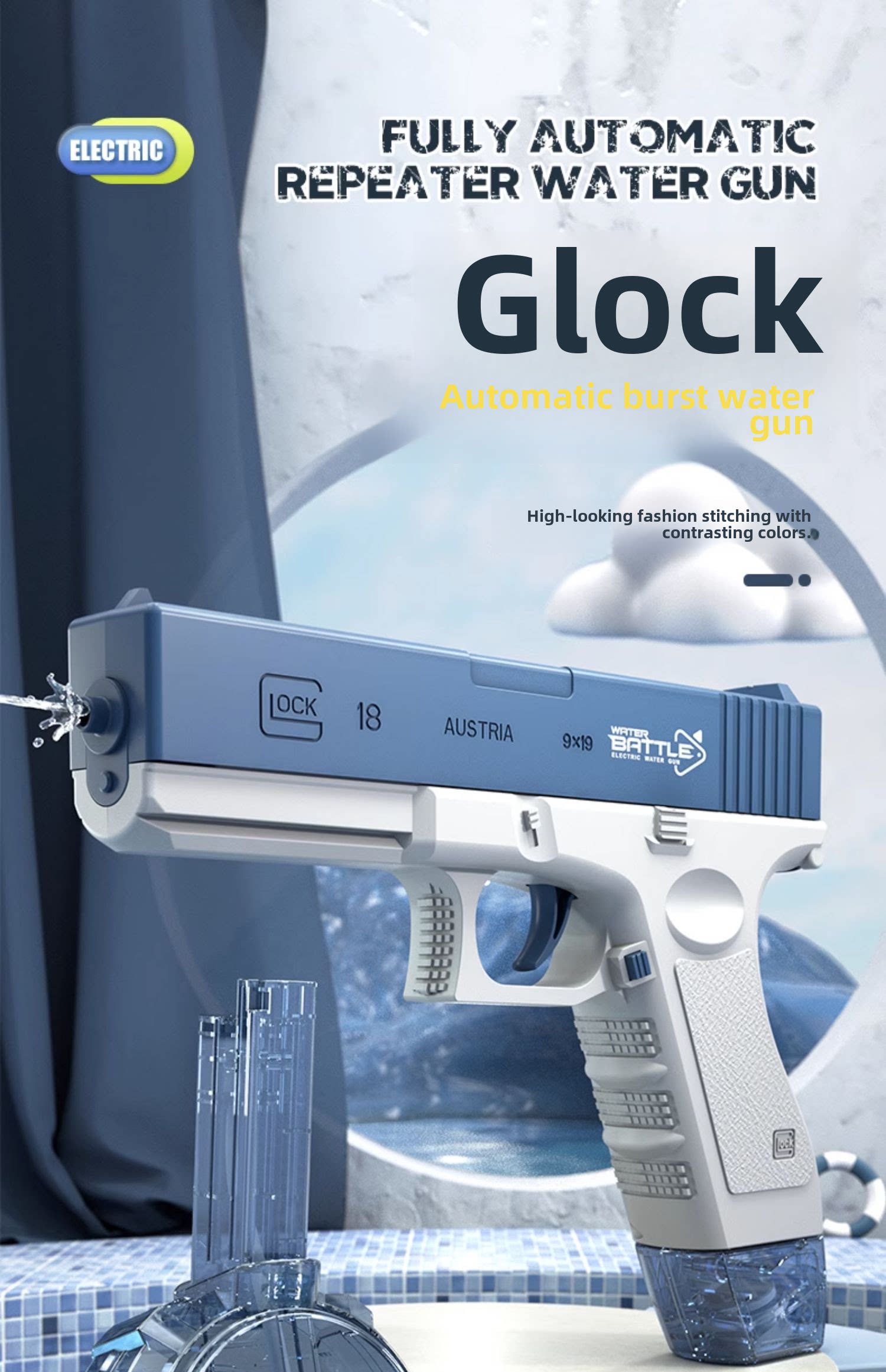 颜色分类:电动连发格洛克【蓝色】配2弹夹