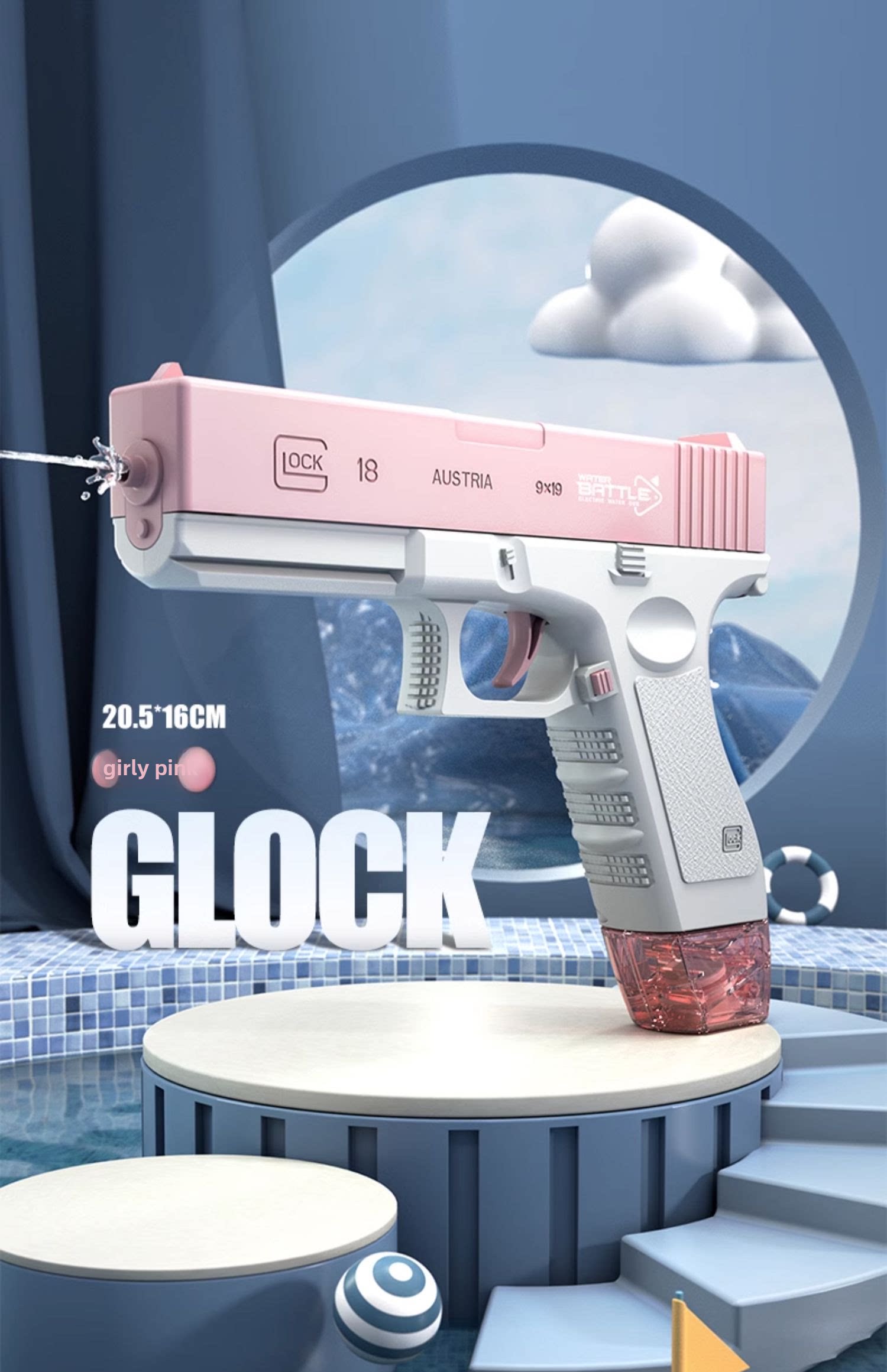 颜色分类:电动连发格洛克【粉色】配2弹夹