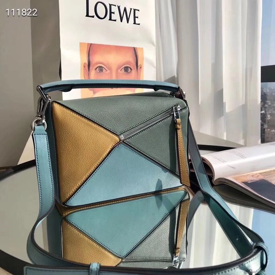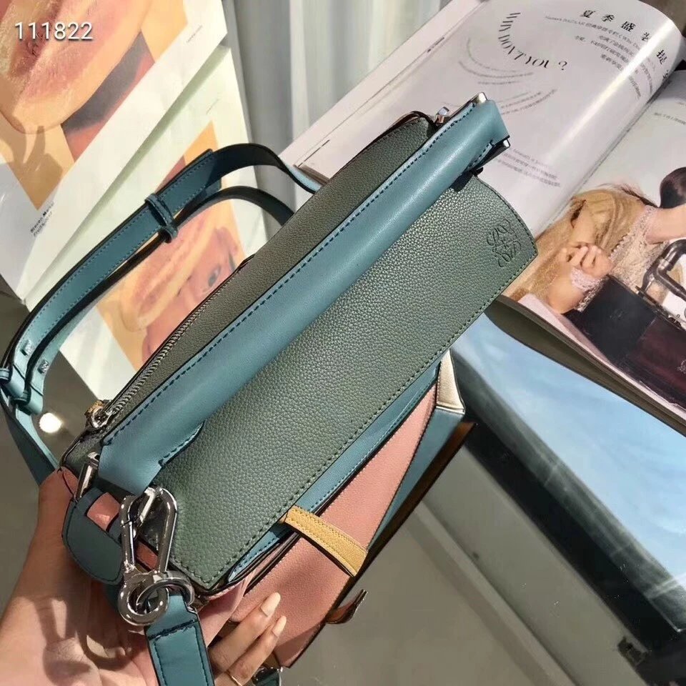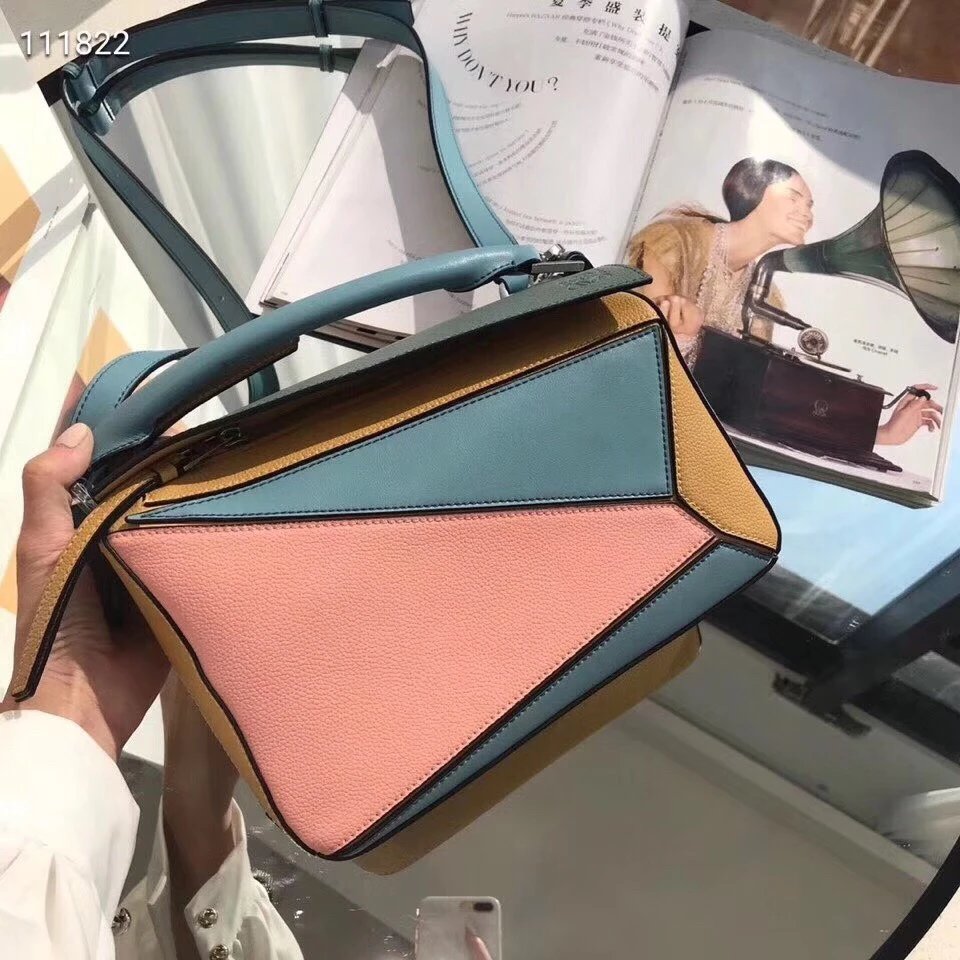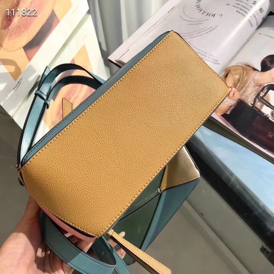 Loe罗家几何包荔枝纹牛皮拼色女包puzzl时尚单肩手提包斜挎包休闲百搭手机包