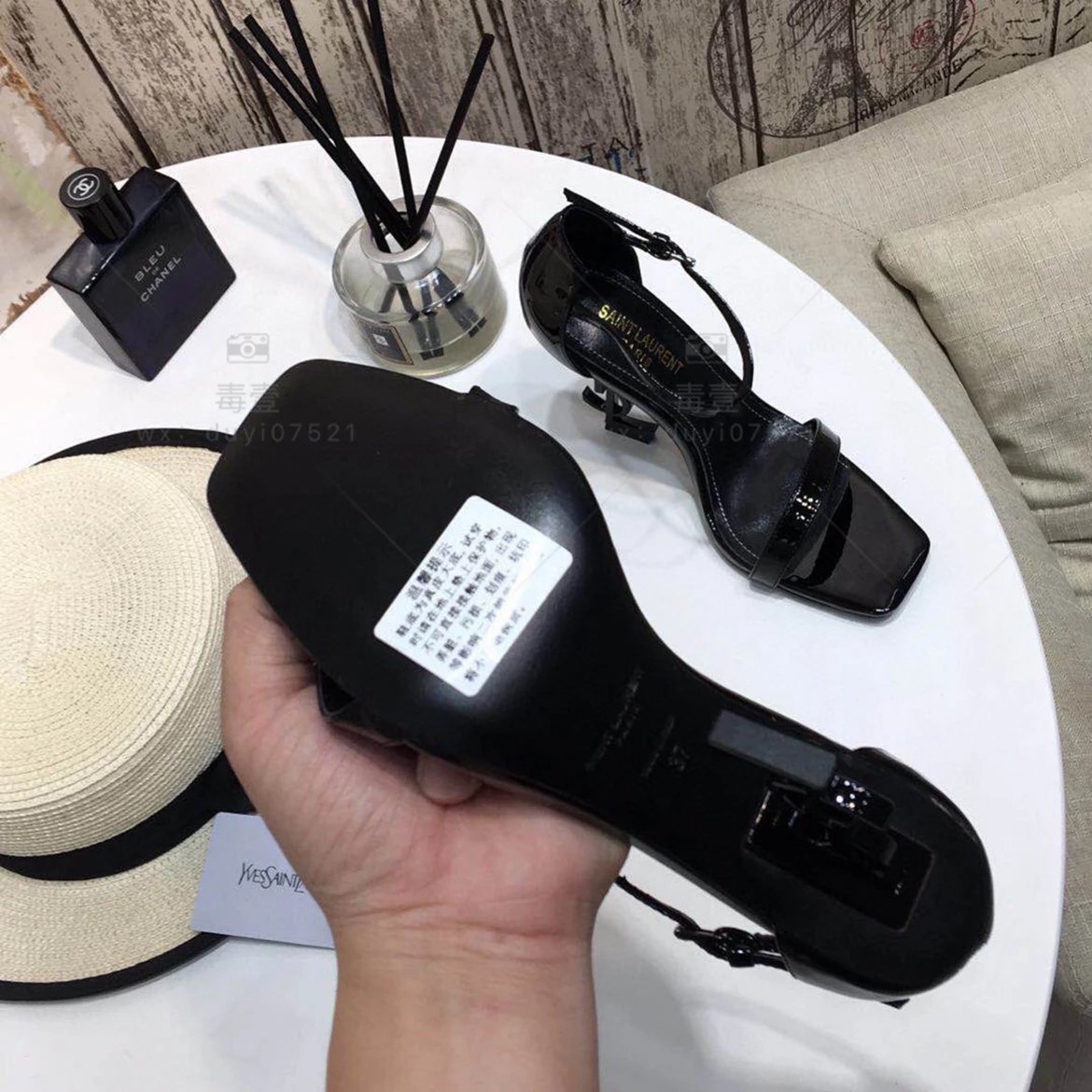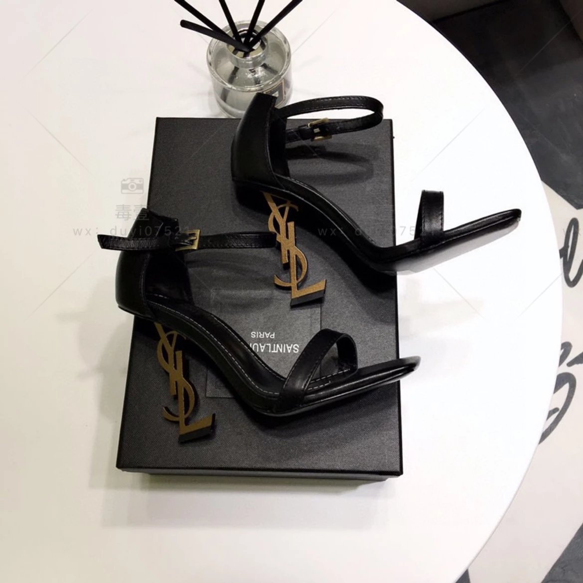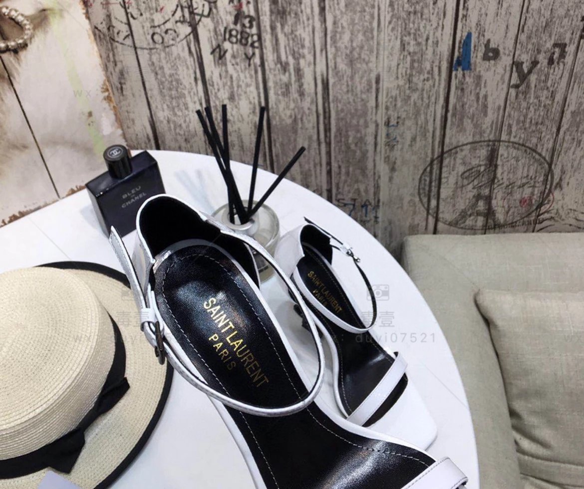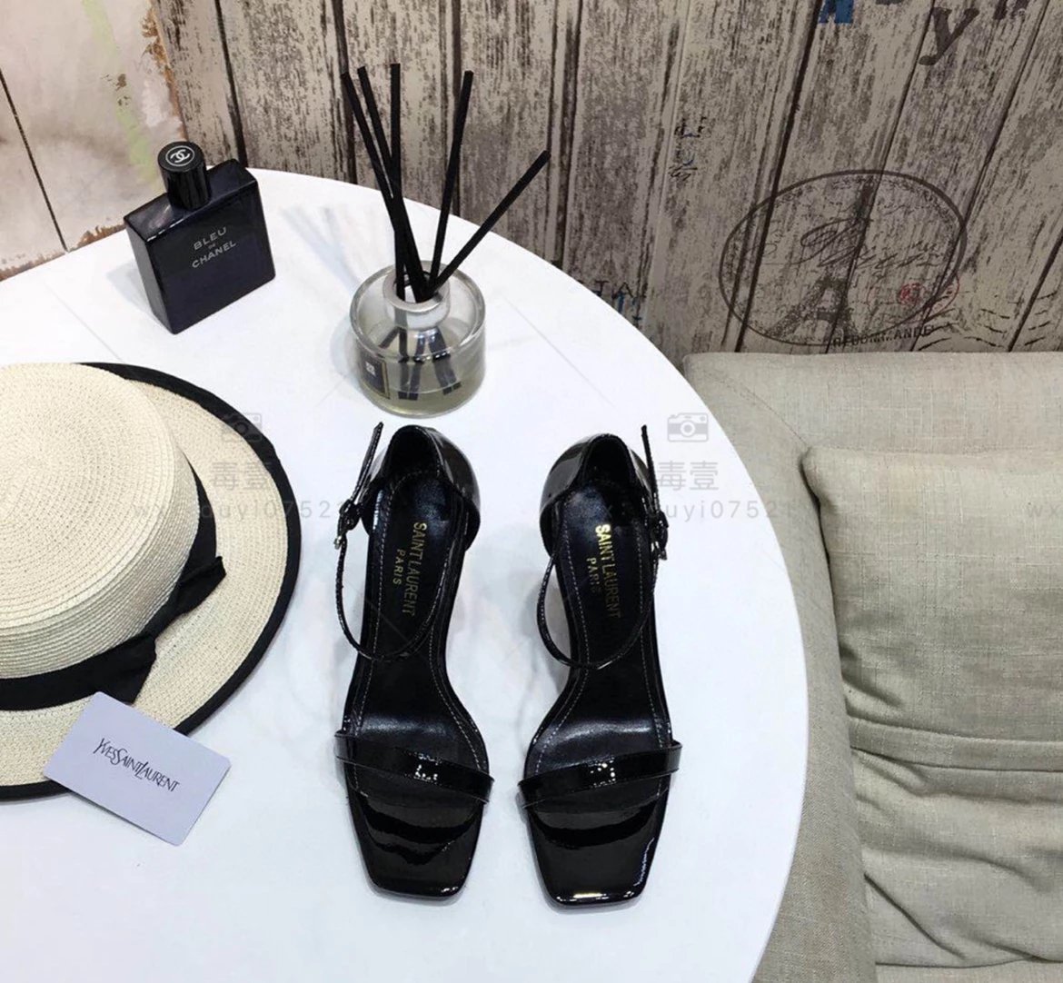 SAINT LAURENT圣罗兰 Logo跟高跟凉鞋2022年春夏新款一字扣带高跟鞋仙女风细跟方头露趾凉鞋女黑色高跟鞋女上圣罗兰高跟鞋圣罗兰凉鞋