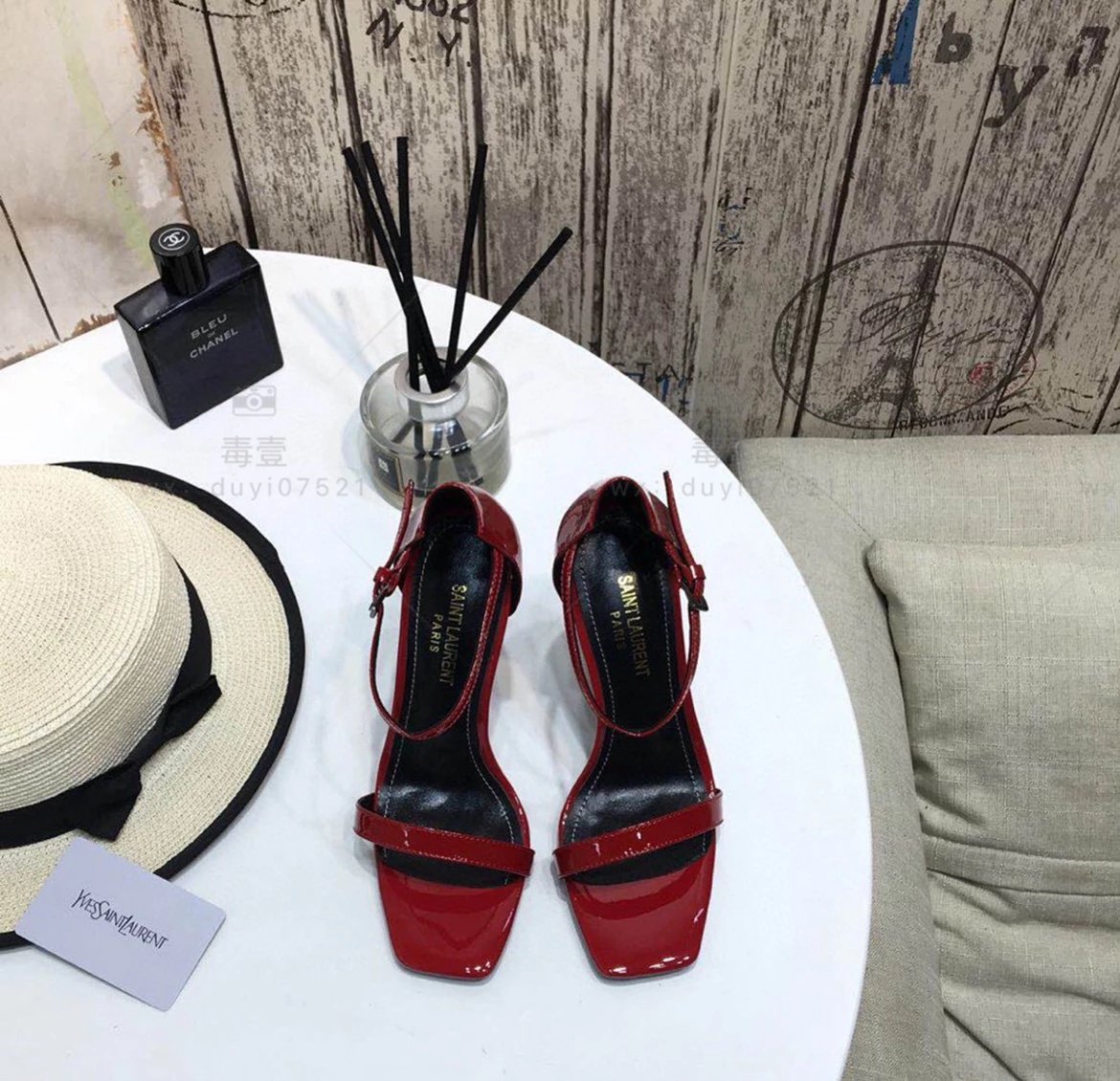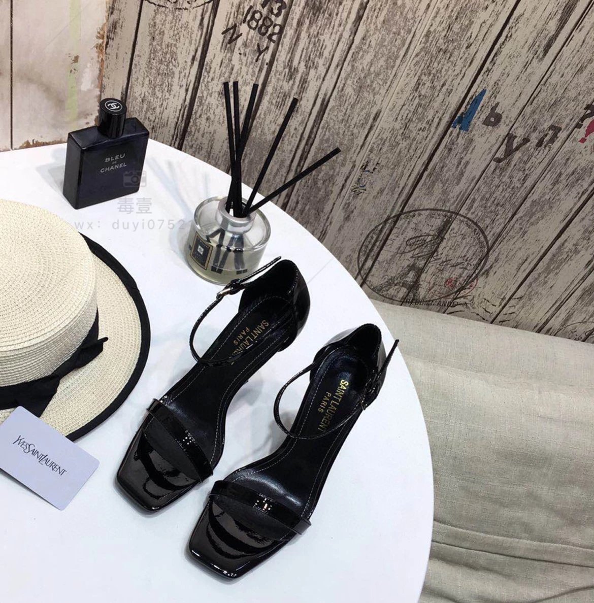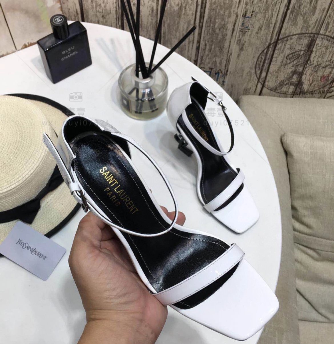SAINT LAURENT圣罗兰 Logo跟高跟凉鞋2022年春夏新款一字扣带高跟鞋仙女风细跟方头露趾凉鞋女黑色高跟鞋女上圣罗兰高跟鞋圣罗兰凉鞋