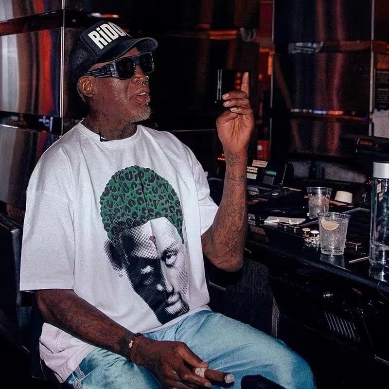 vlone球星罗德曼联名款大V短袖t恤男女高街宽松半袖