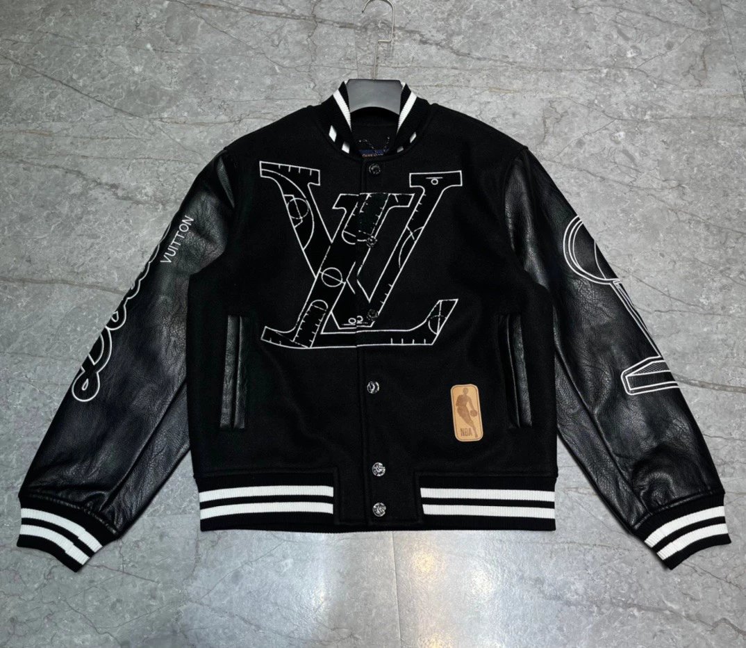 字母拼皮袖夹克棒球服外套