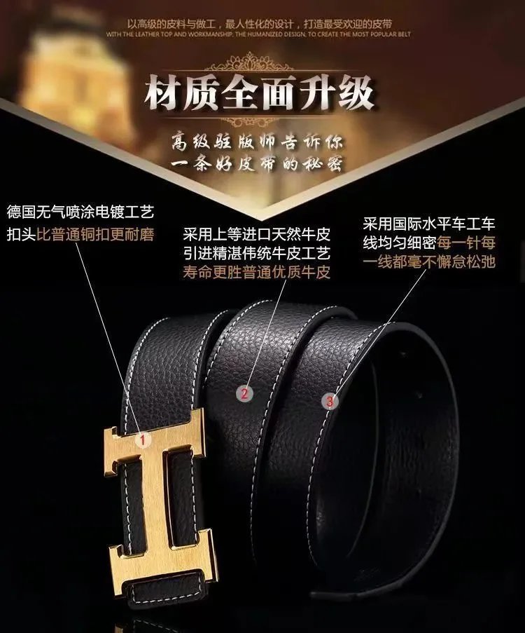 皮带男士真皮腰带字母工字扣平滑扣青年时尚皮带 - Agentlo Weidian Product – Agentlo