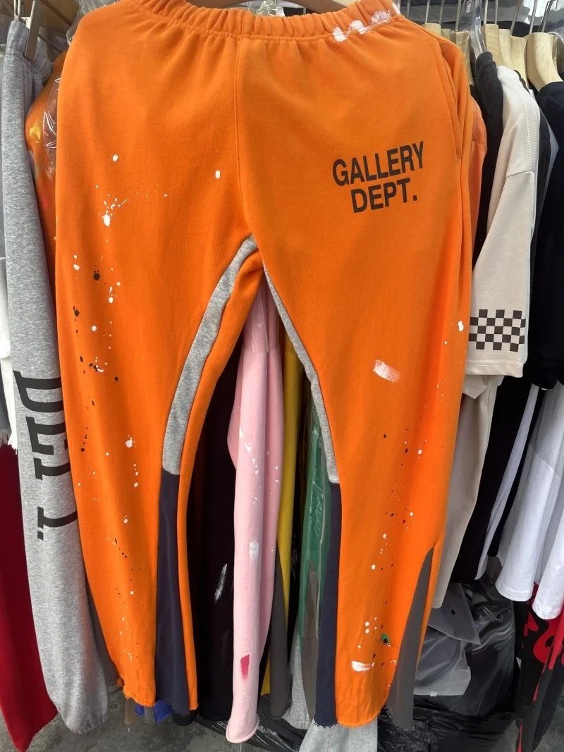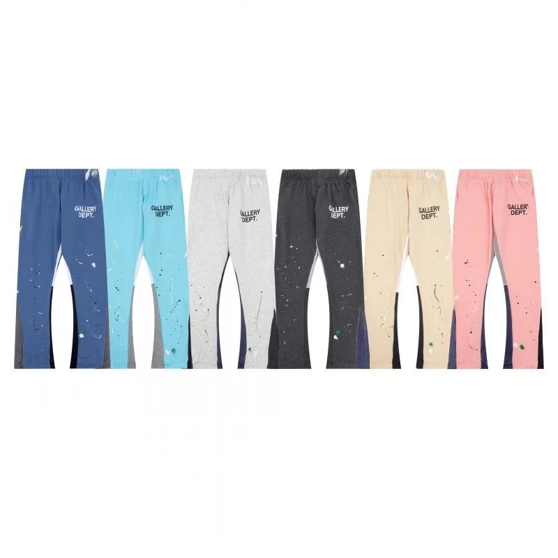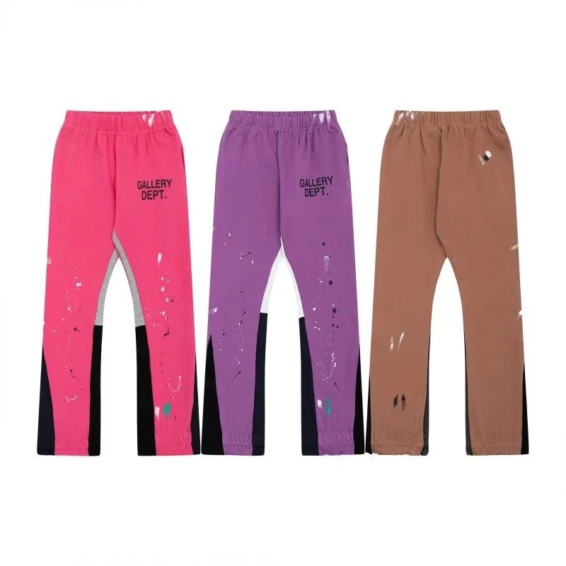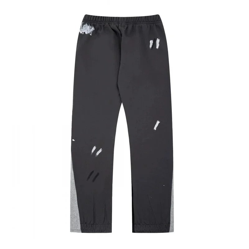 经典手绘泼墨涂鸦印花拼接纯棉卫裤情侣休闲长裤