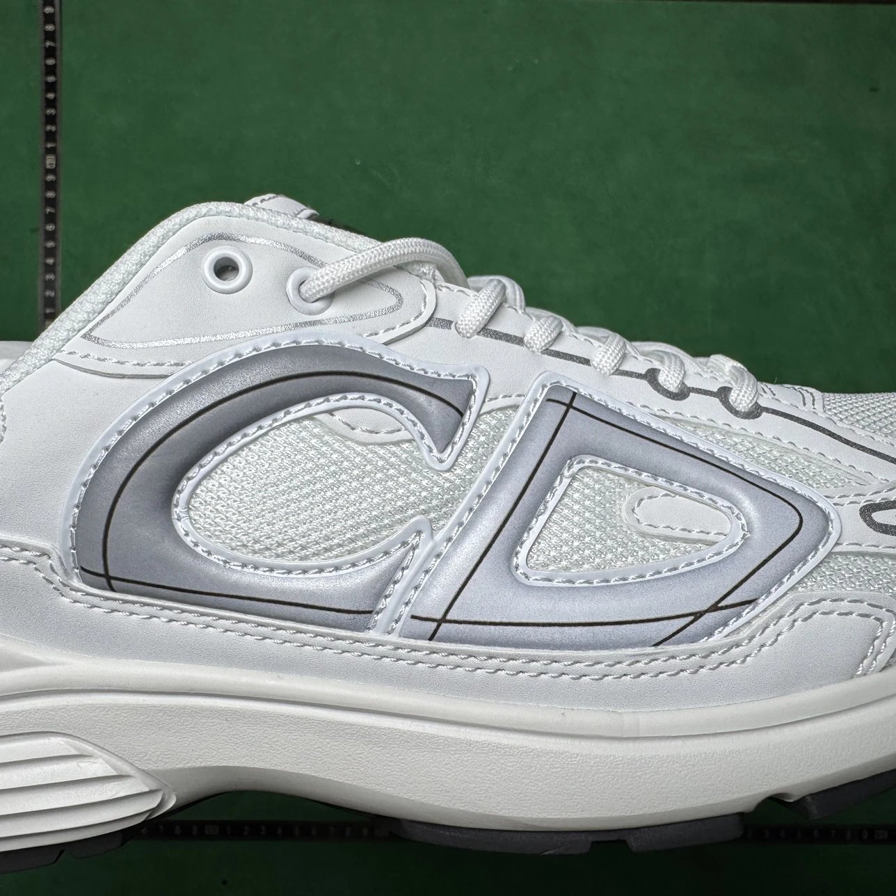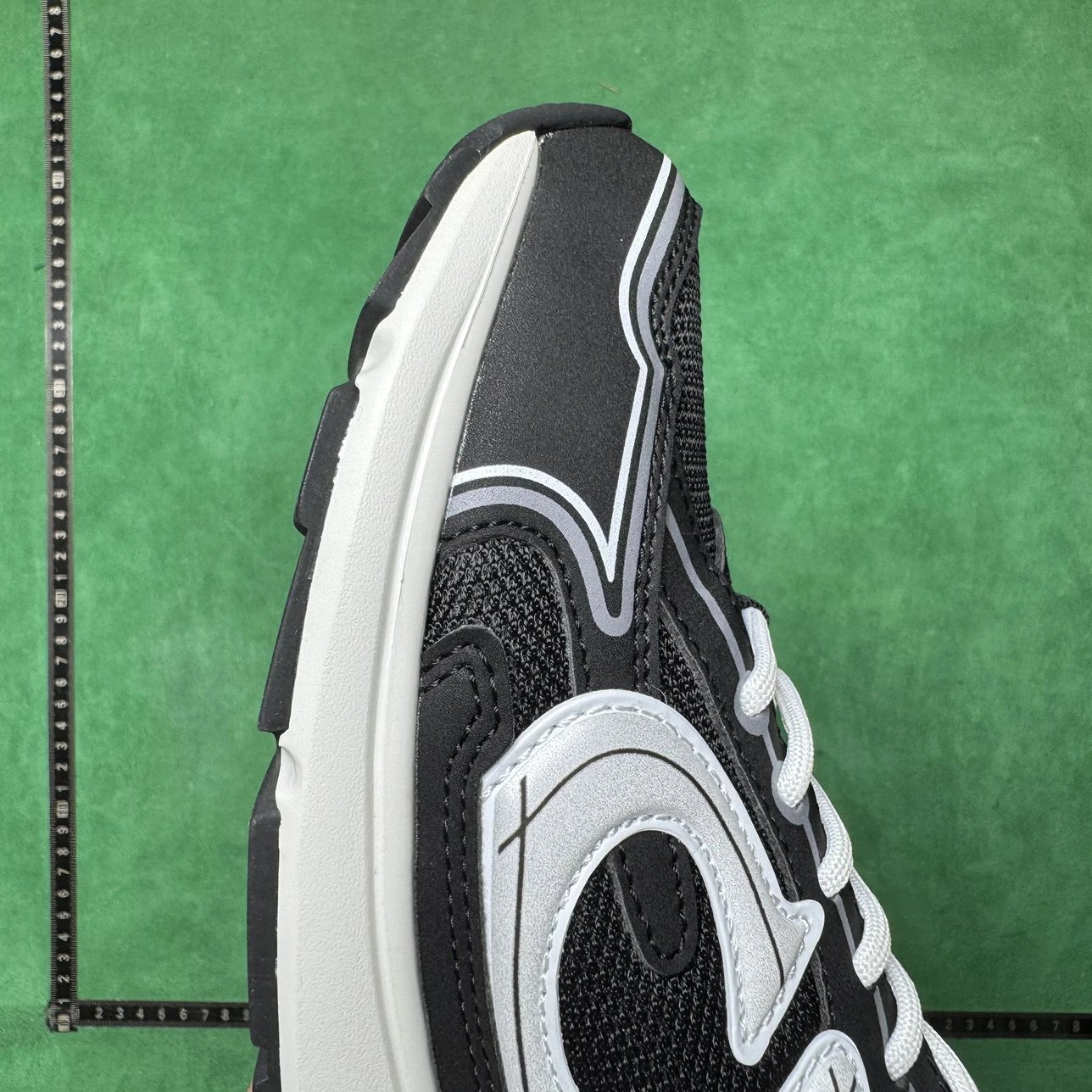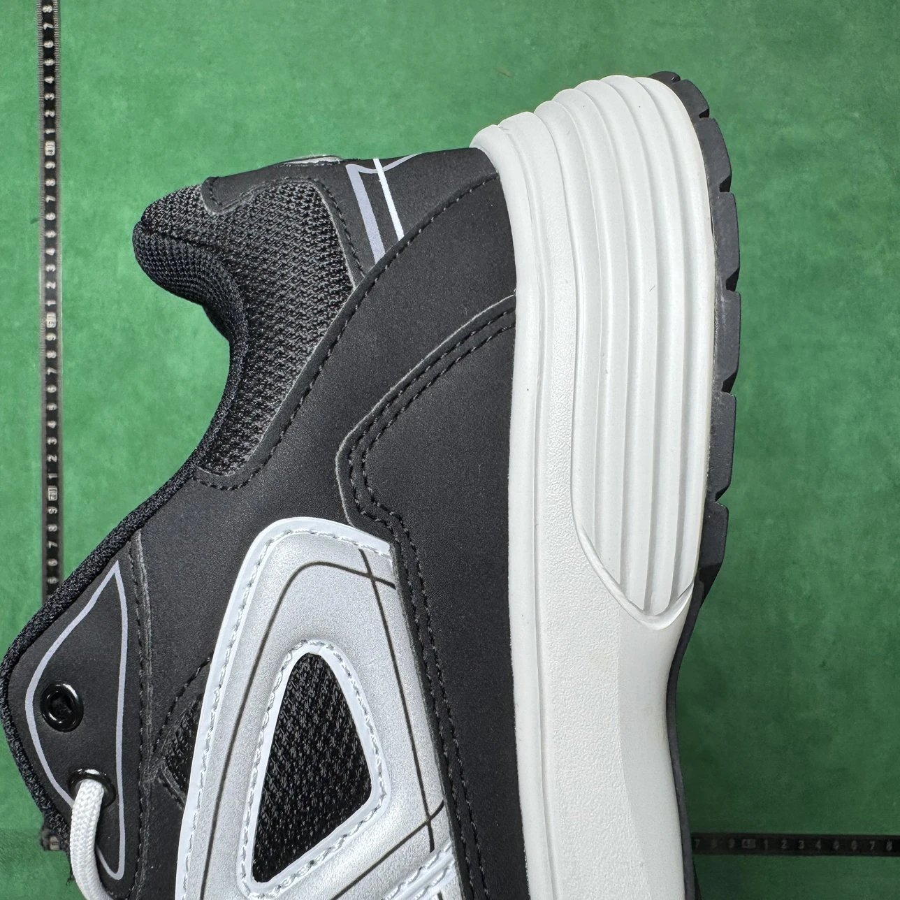 Example: Take photos of the logo, check stitching quality, measure the insole length, etc.