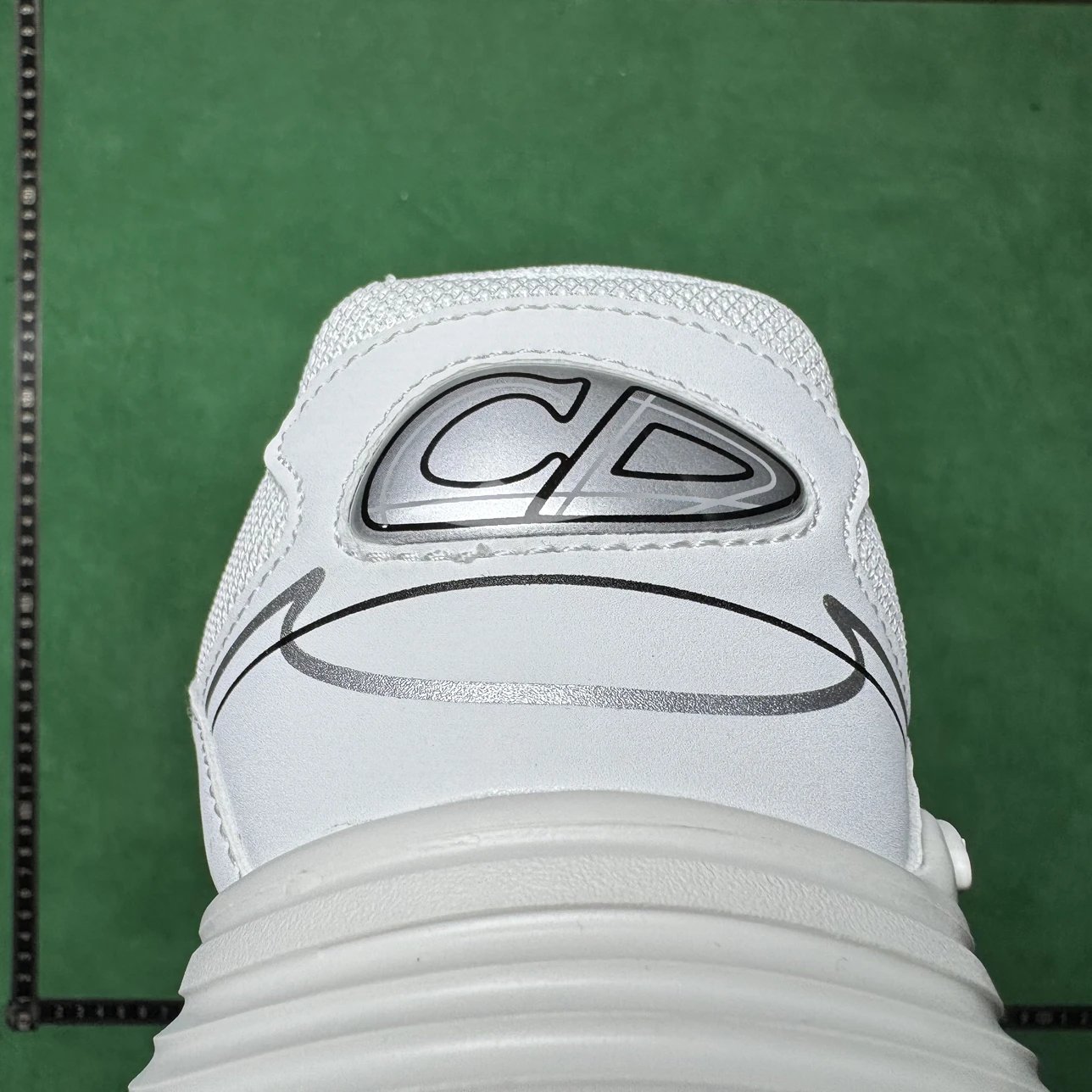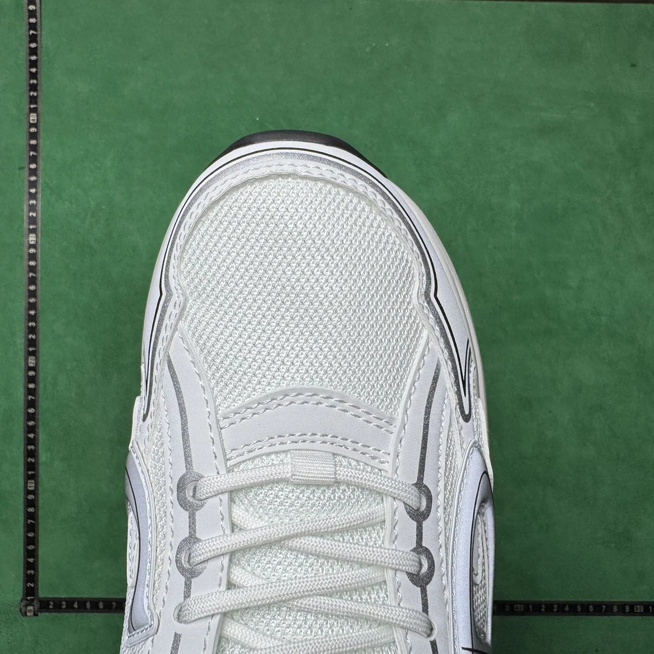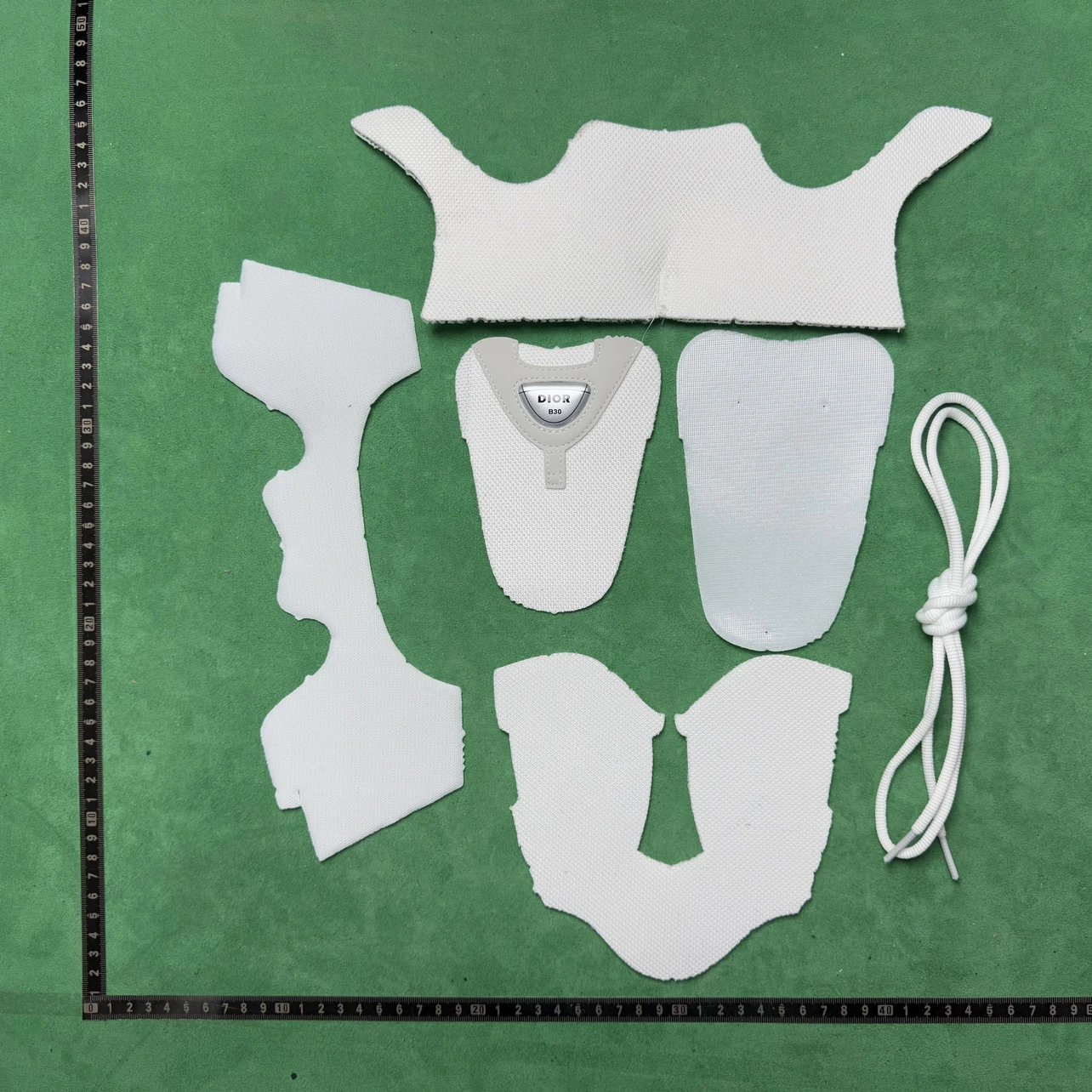 Example: Take photos of the logo, check stitching quality, measure the insole length, etc.