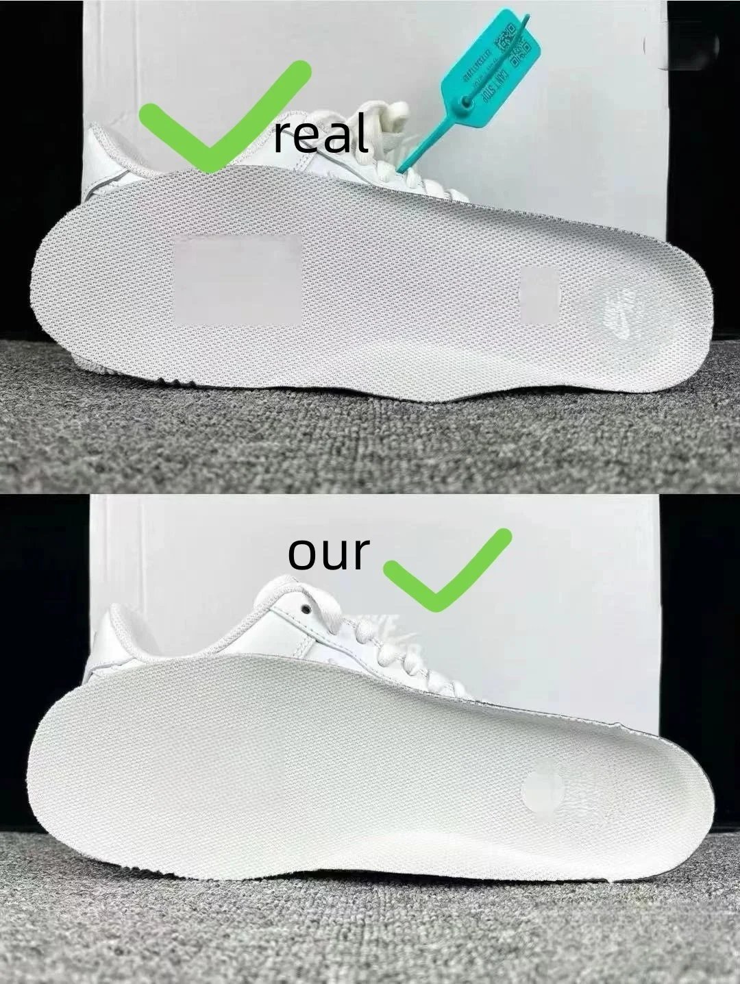 Example: Take photos of the logo, check stitching quality, measure the insole length, etc.