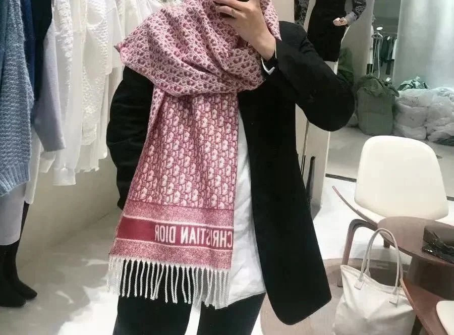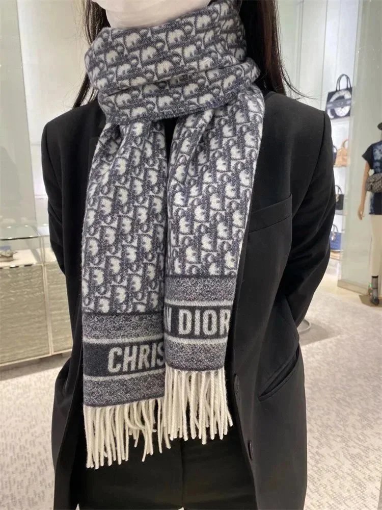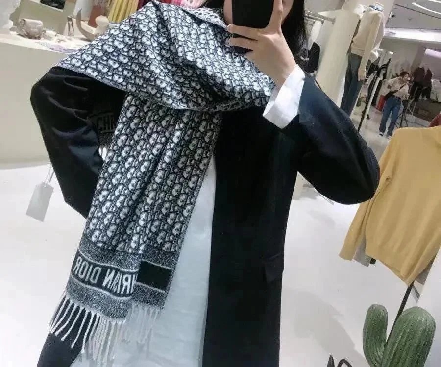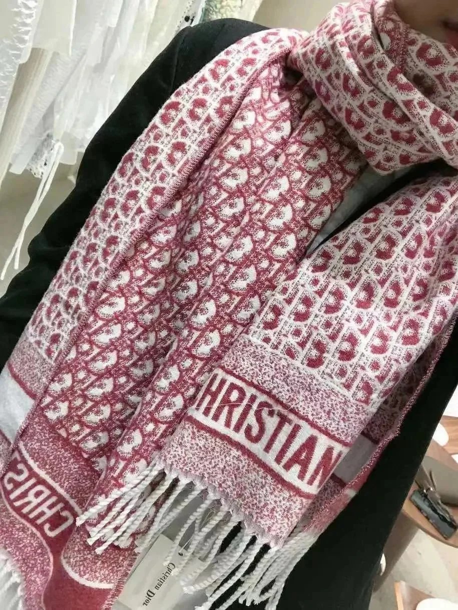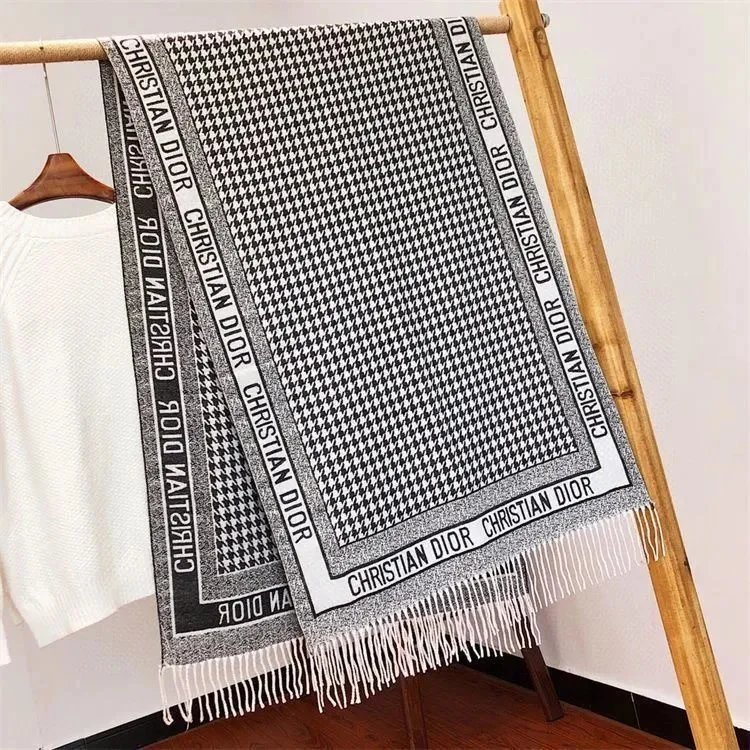 欧美风羊绒围巾女D字母大披肩流苏保暖直播间爆款秋冬保暖披肩长