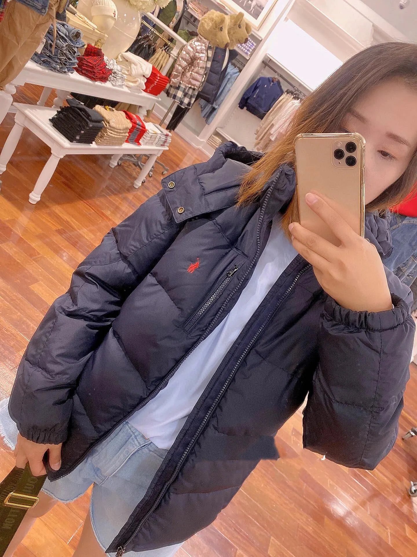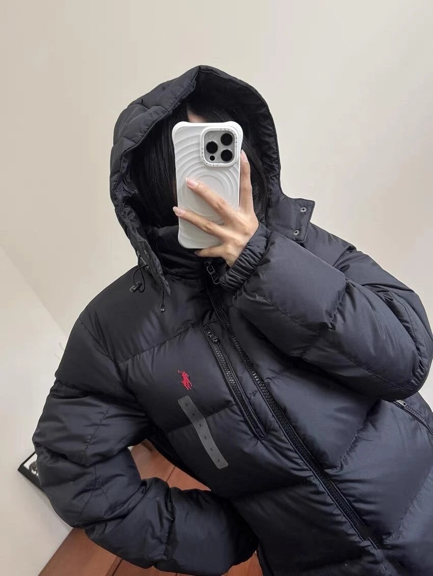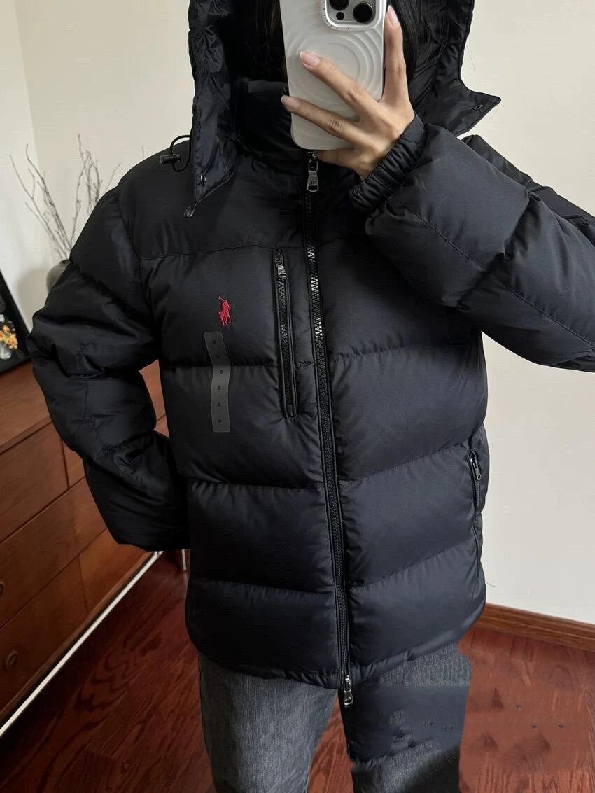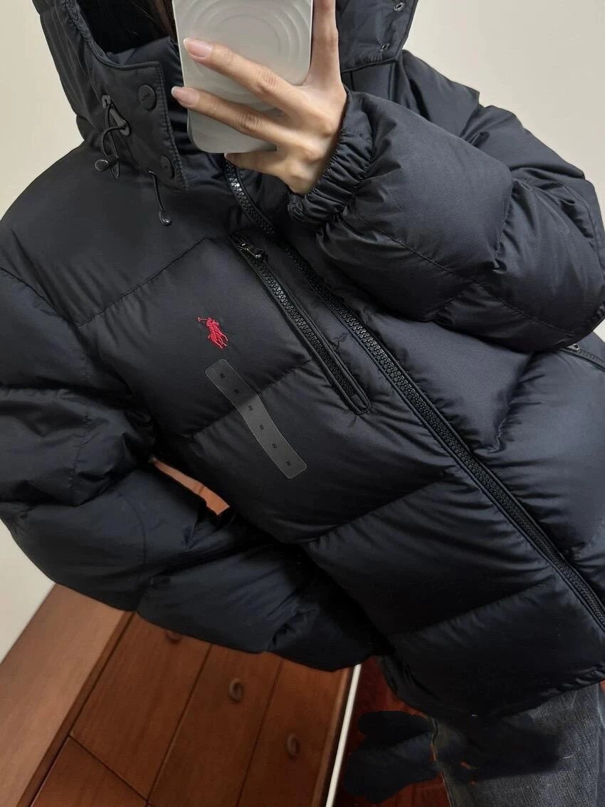 可扫码外贸拉夫RL可拆卸帽超厚羽绒服防风防水情侣款拉链夹克