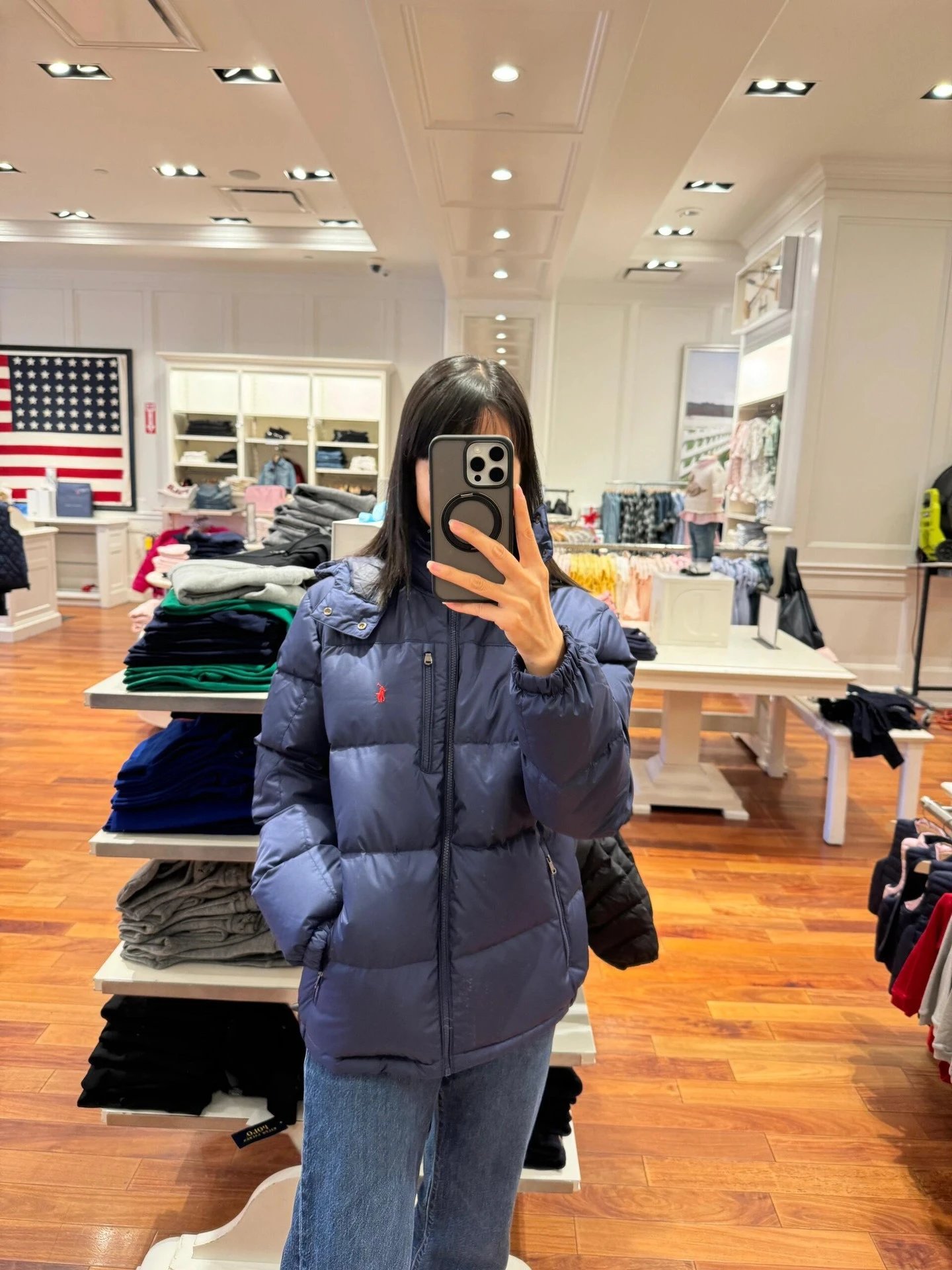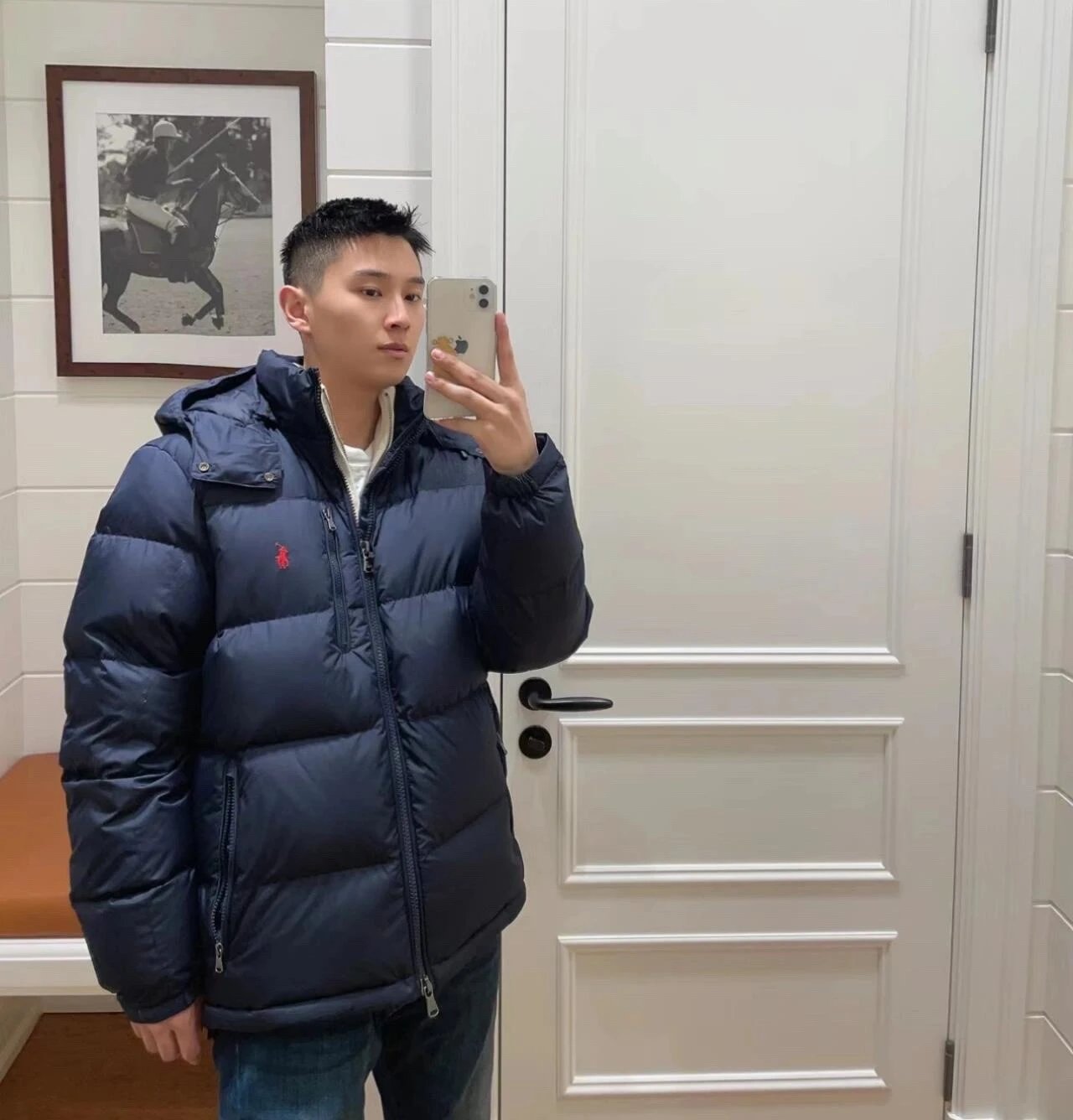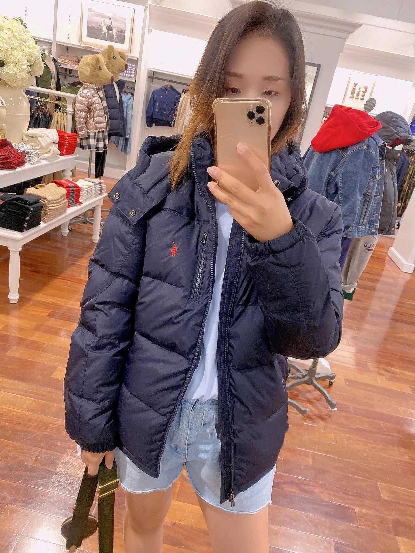可扫码外贸拉夫RL可拆卸帽超厚羽绒服防风防水情侣款拉链夹克