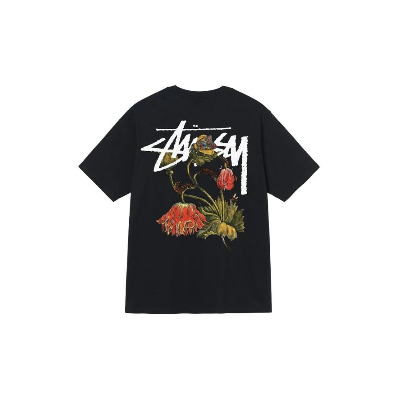 STUSSY斯图西 山茶花印花圆领短袖T恤男女同款 原版打造 细节高控 面料精选220g纯棉面料 手感柔软舒适 吸汗透气 百搭款 原