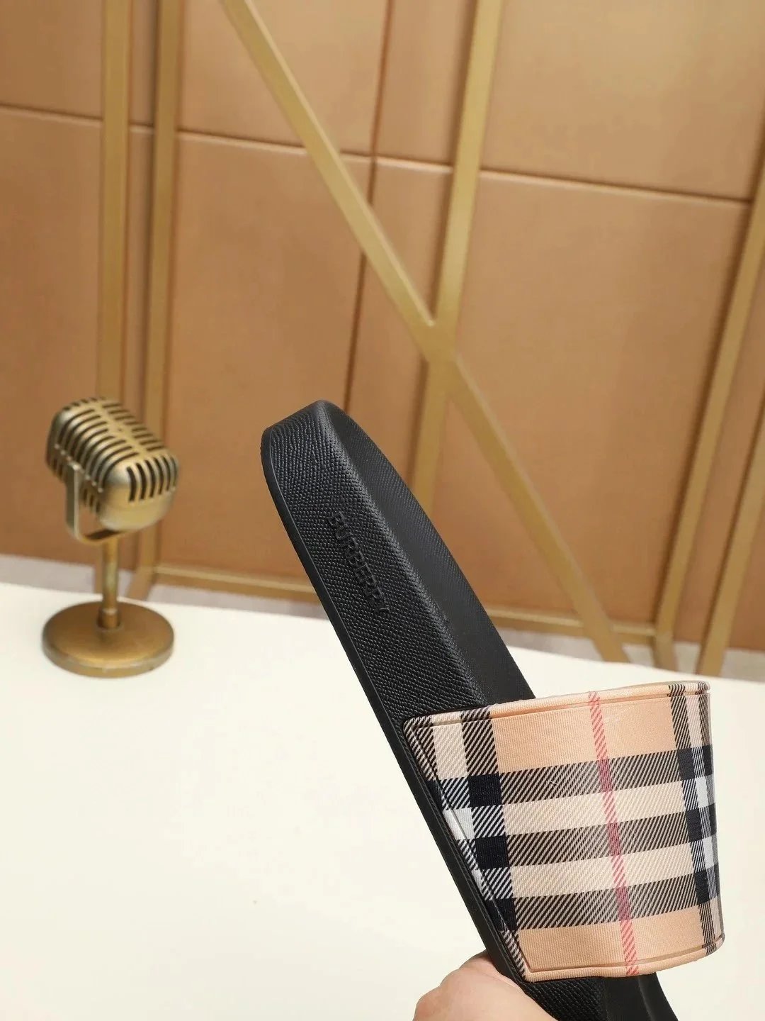 Example: Take photos of the logo, check stitching quality, measure the insole length, etc.