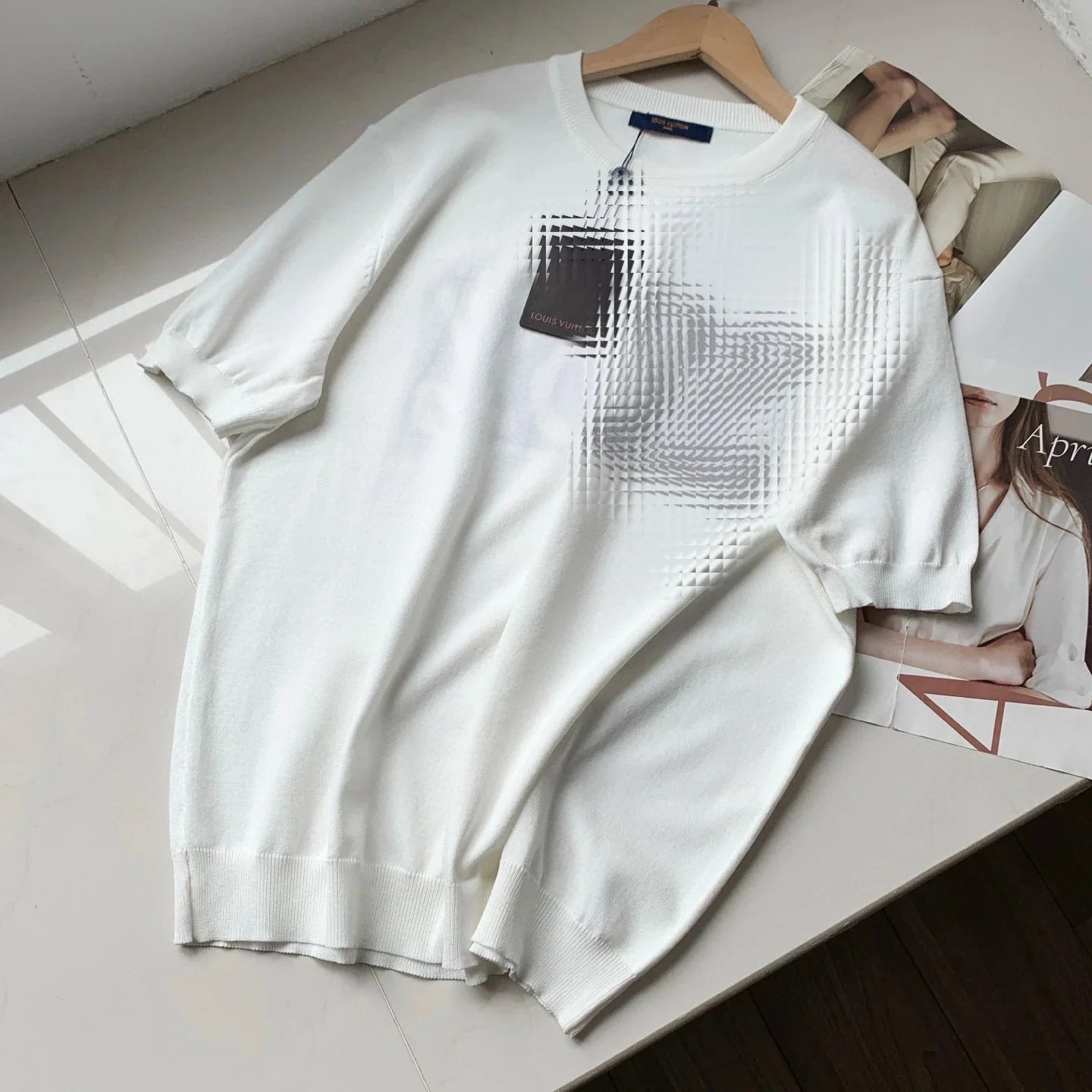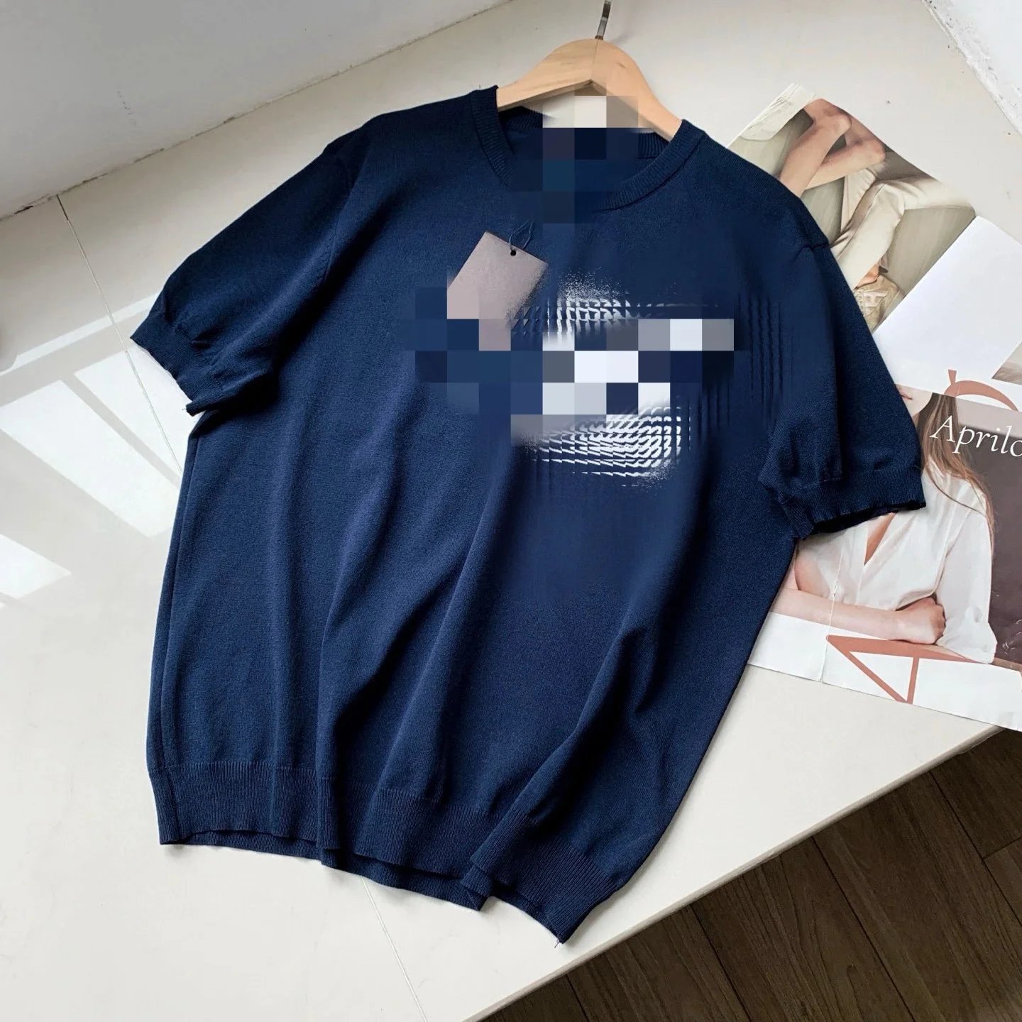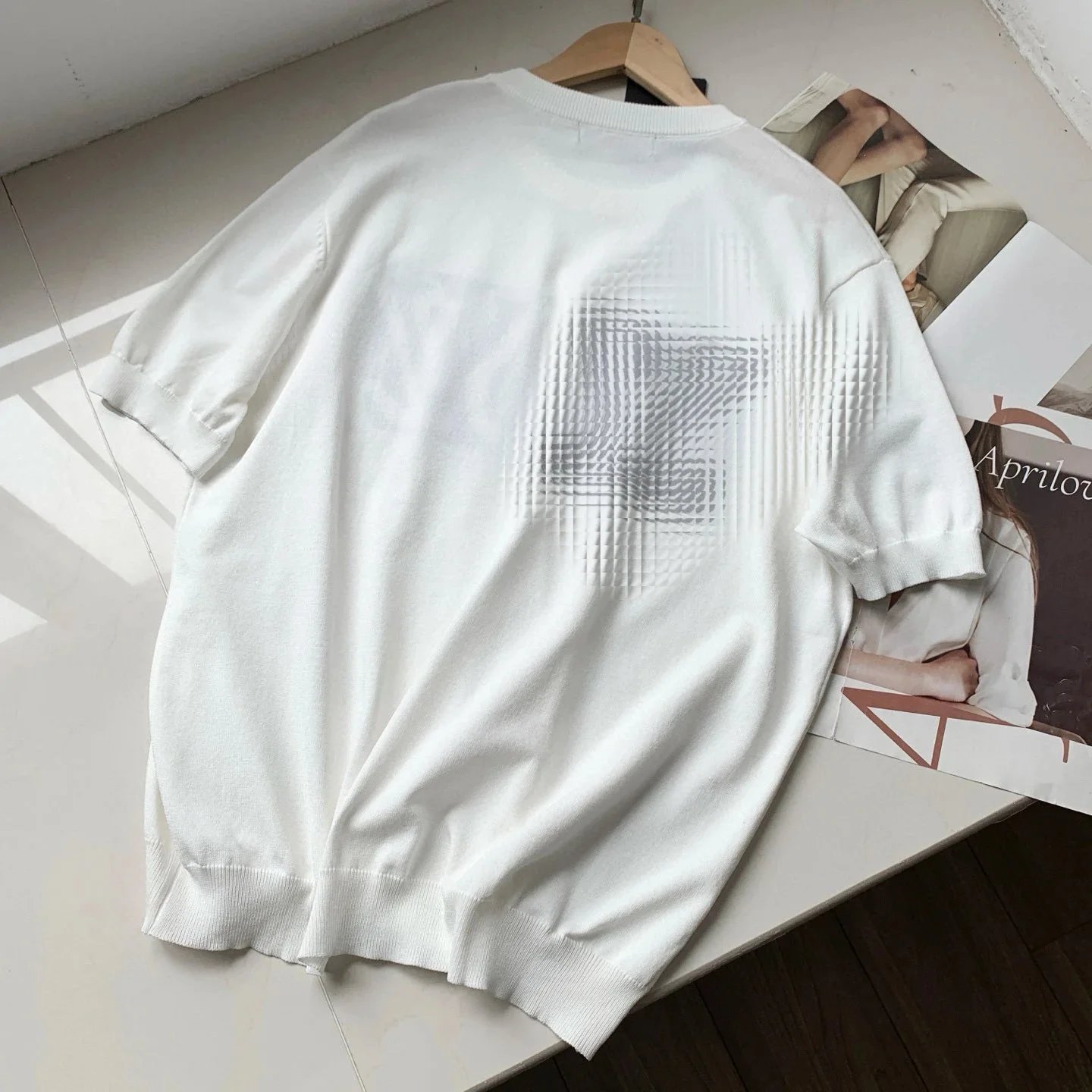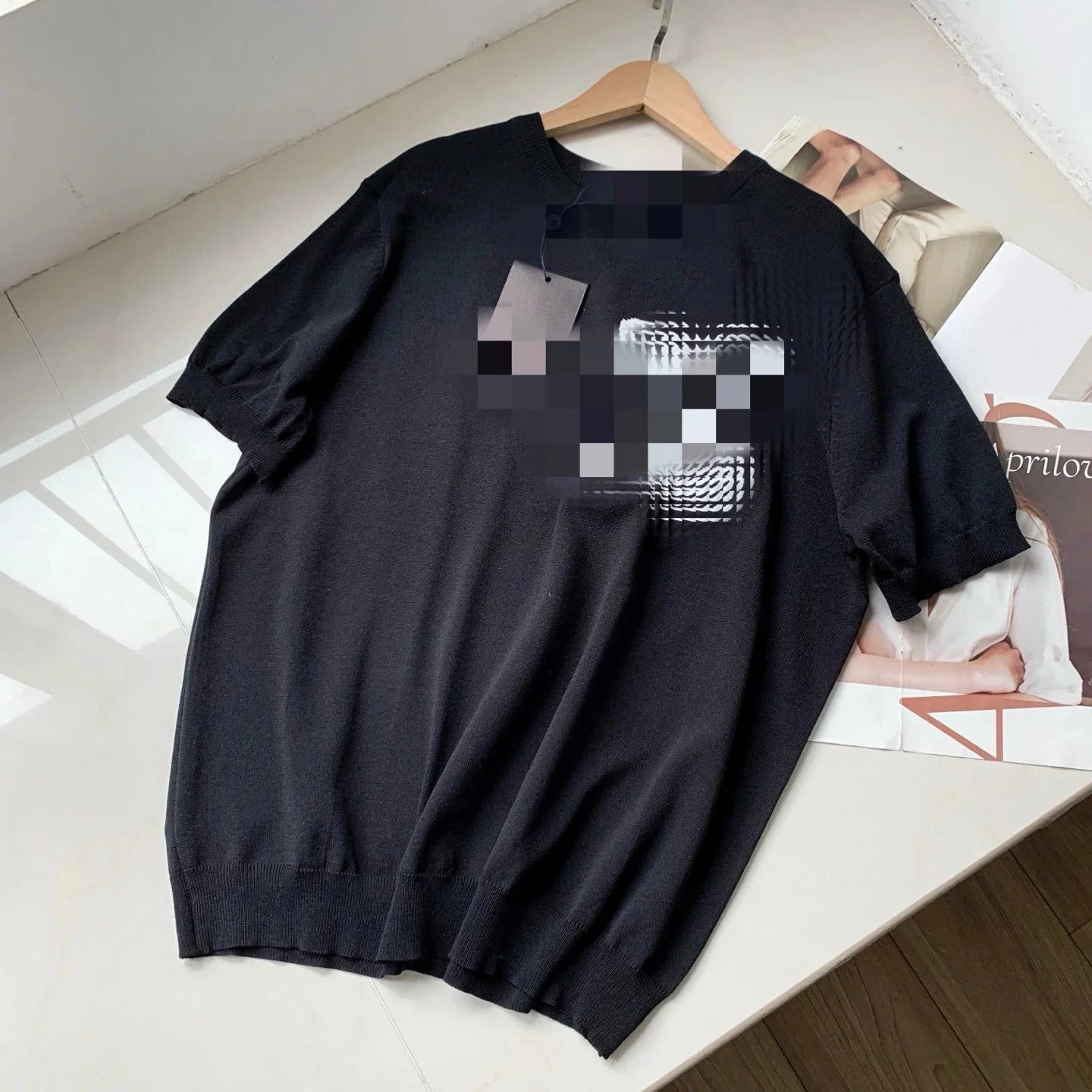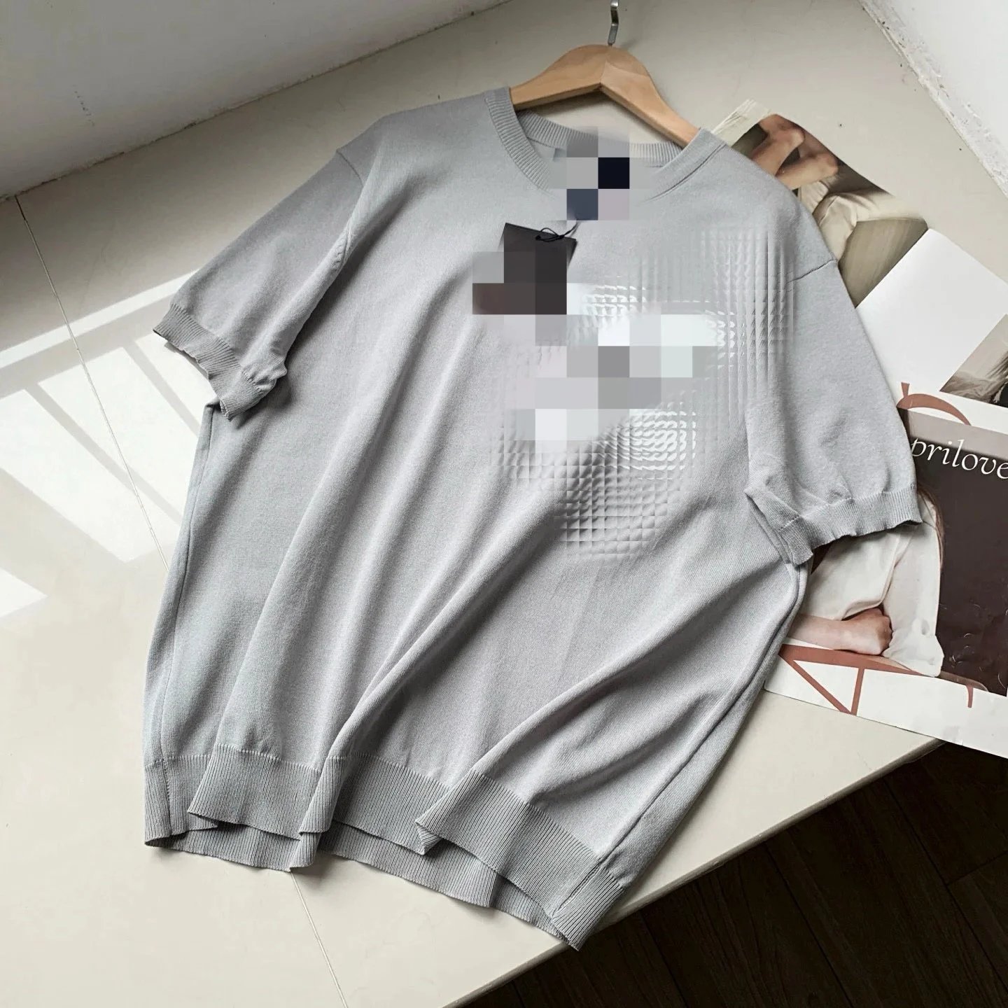 四色版本升级提花大logo加大加厚套头毛衣冰丝短袖023