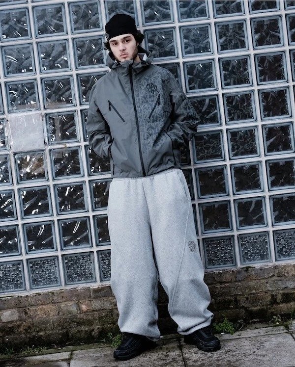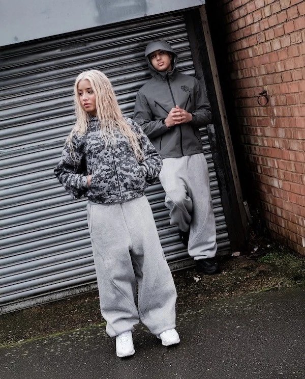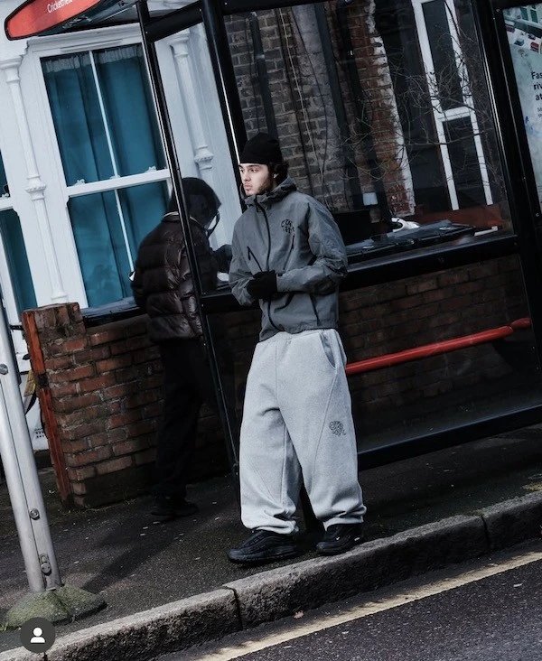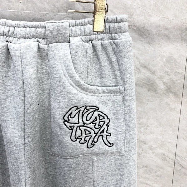 刺绣字母明线拼接加绒束脚长裤